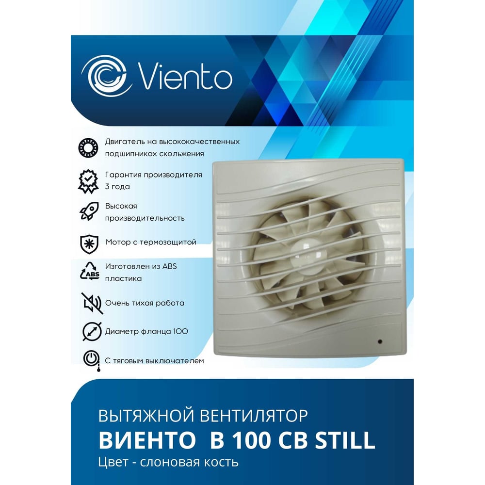 Осевой вытяжной вентилятор ВИЕНТО тяговый выключатель, 130 м3, ВОЛНА, сл. кость, шарикоподшипник ВИЕНТО В100СВ STILL ivory-B