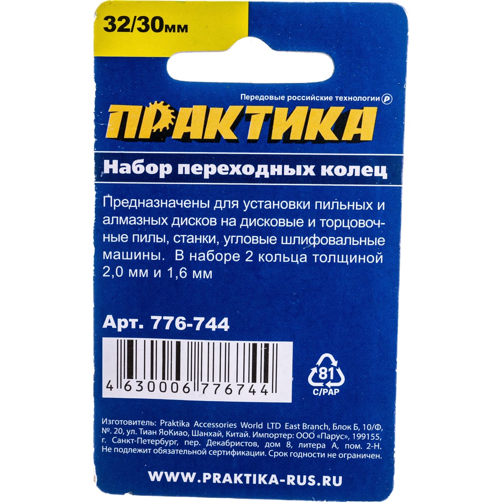 Кольцо переходное (32/30 мм) для дисков ПРАКТИКА 776-744