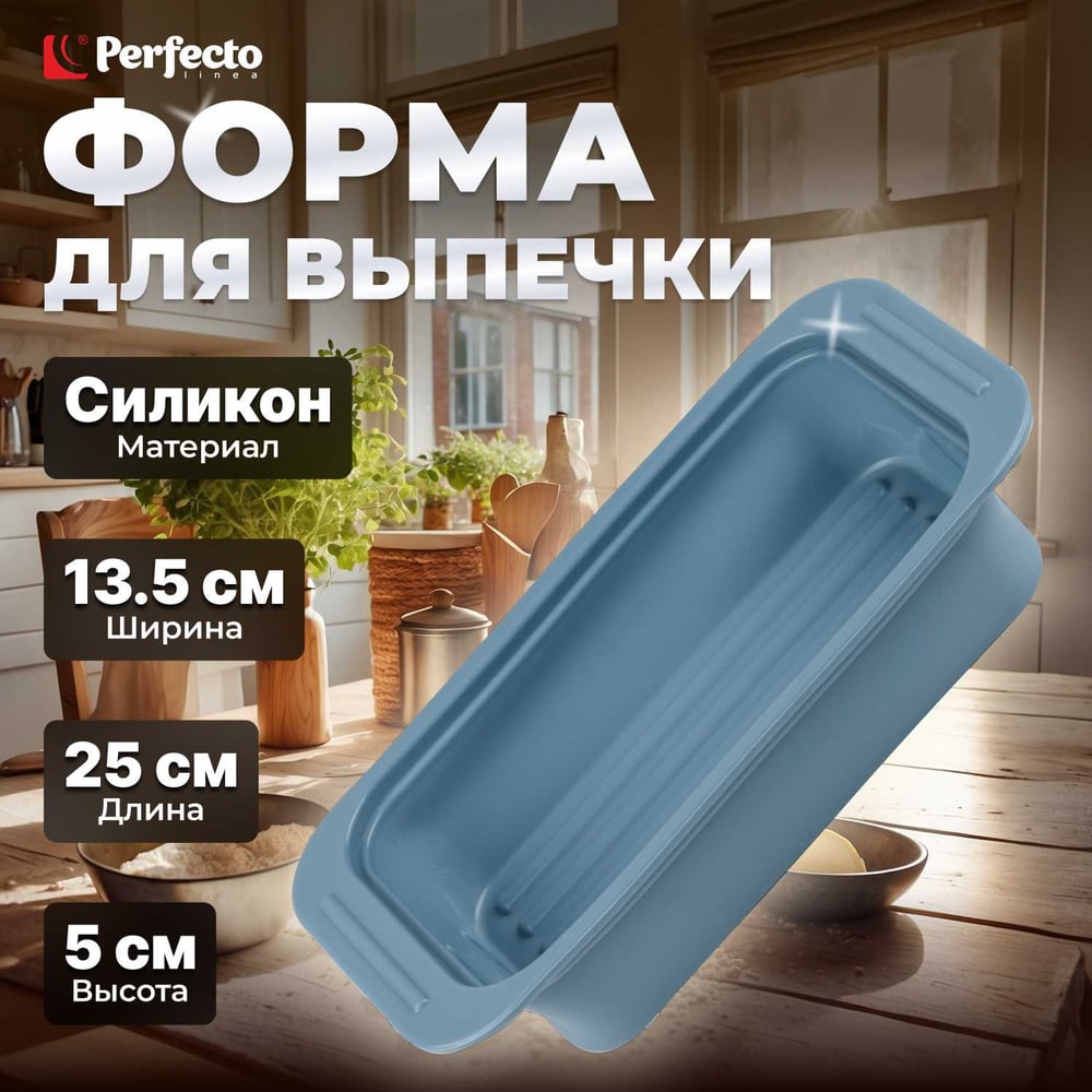 форма для выпечки PERFECTO LINEA силиконовая, прямоугольная, 25x13.5x5 см, серо-голубая 20-013428