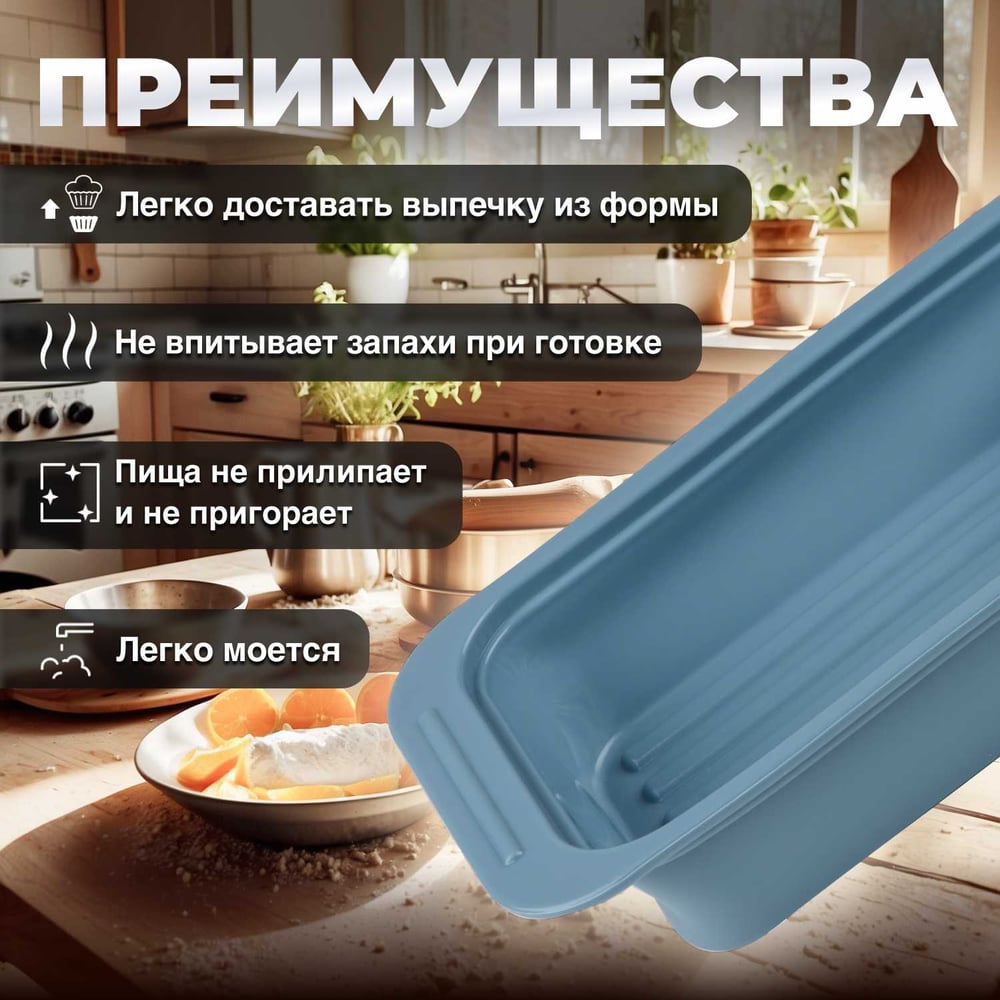 Габариты без упаковки 250х135х50 мм Длина 250 мм Материал силикон Ширина 135 мм Цвет серо-голубой Форма прямоугольная Количество в комплекте 1 шт Назначение для выпечки Количество отделений 1 Набор нет Глубина 50 мм Ручки для переноса да Мойка в посудомоечной машине да Антипригарное покрытие нет Разъемная нет Можно использовать в СВЧ да