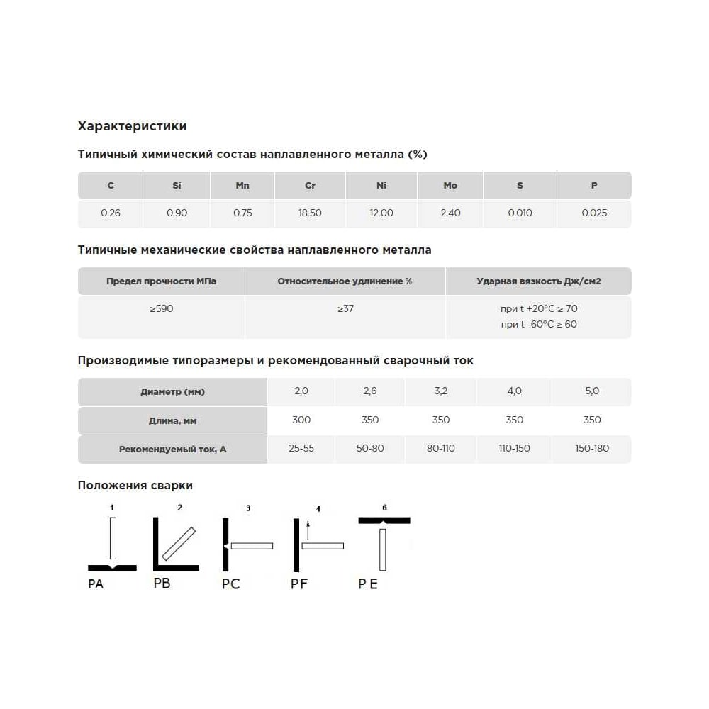 | Марка электрода | E316L-16 |