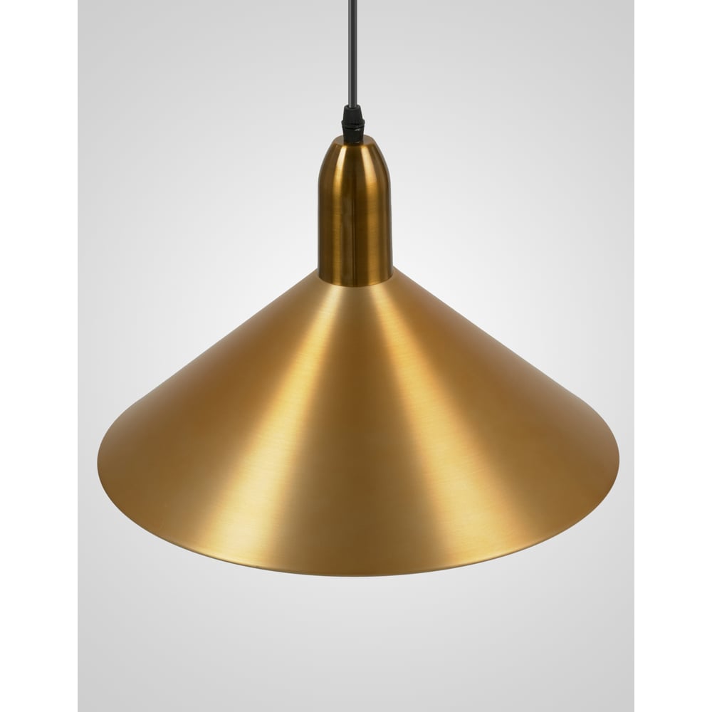 Лампа в комплекте нет Вес нетто 0.9 кг Мощность светильника 40 Вт Цоколь E27 Тип лампы накаливания Защита от пыли и влаги IP20 Стиль минимализм Материал плафона металл Вид крепления подвесной Коллекция Scandi Цвет плафона золото Тип крепления крюк Цветопередача не применимо Ra Количество ламп 1 Высота 25 см Мощность лампочки 40 Вт Площадь освещения 2 м² Напряжение питания 220В Регулировка яркости нет Материал арматуры металл Цвет арматуры золото Трансформатор в комплекте нет Провод провод без вилки Основной цвет золото Диаметр 35 см Тип плафонов цветной Особенности декоративный Поверхность арматуры глянцевая/матовая Поверхность плафонов матовая Тип подвеса провод/шнур С изменяемой цветовой температурой нет Направление плафонов вниз Форма плафона Конусные LED-подсветка нет С поворотным плафоном нет Количество плафонов 1 Горизонтальная проекция плафона круг Дизайнерские да