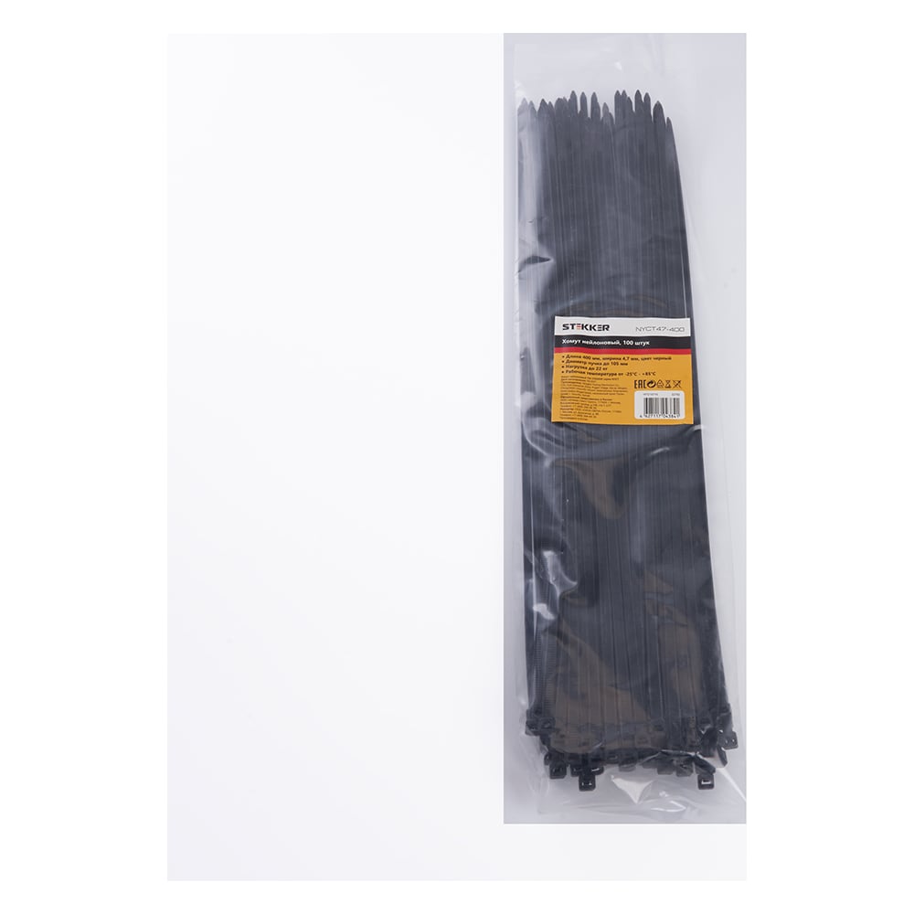 Хомут STEKKER NYCT47-400 нейлоновый 4.7x400 мм, 105 мм, нагрузка 22 кг, черный, 100 шт в упак 32792