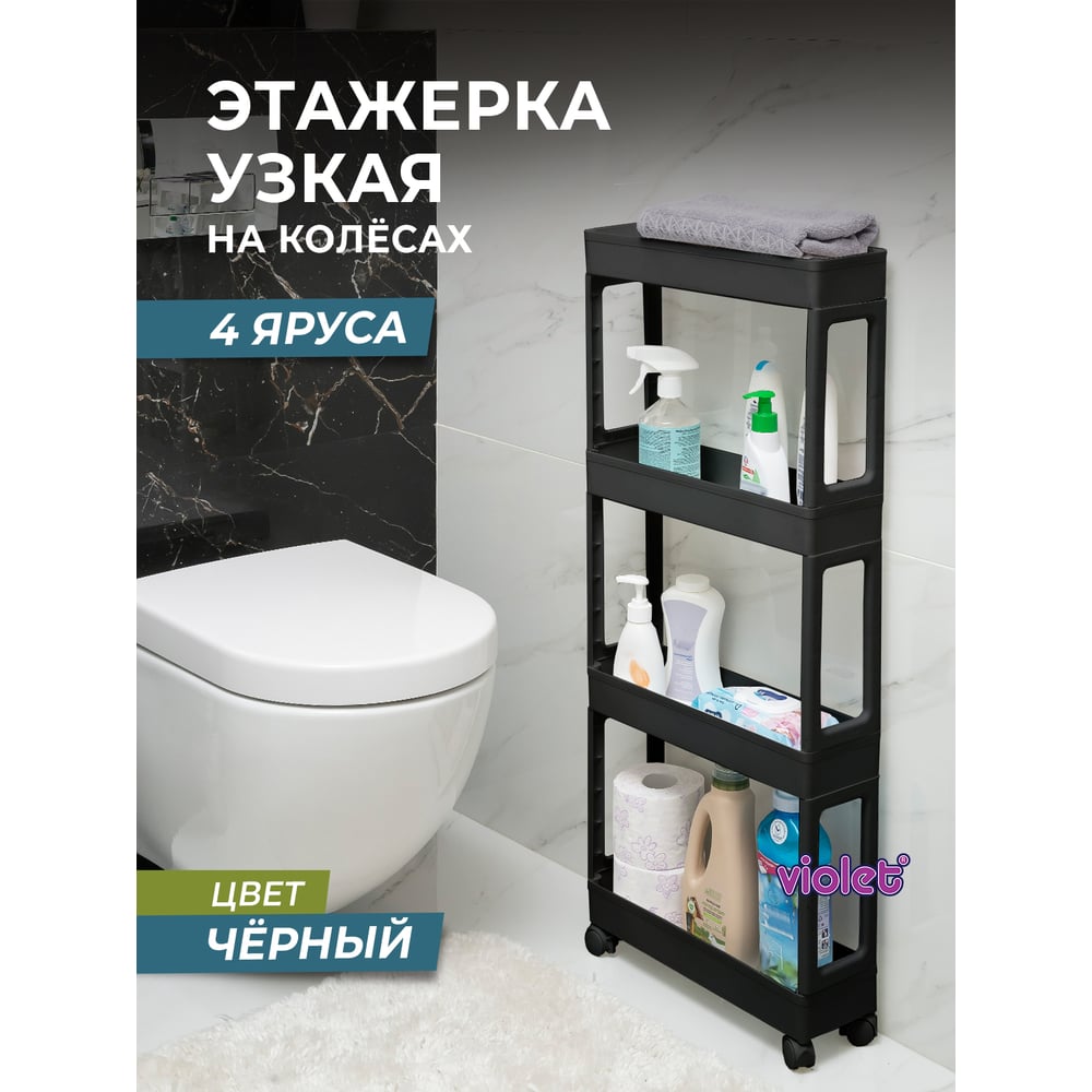 Этажерка Violet узкая, 4-х ярусная, на колесах, черная 760407