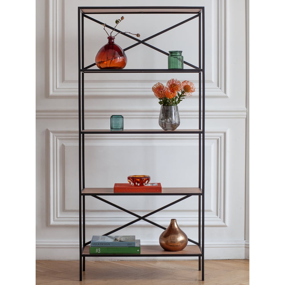 Стеллаж GreenWeen KARIN-800, черный каркас, полки ЛДСП Робиния, 1750x800x300 GW-KARIN-800-B-L-R