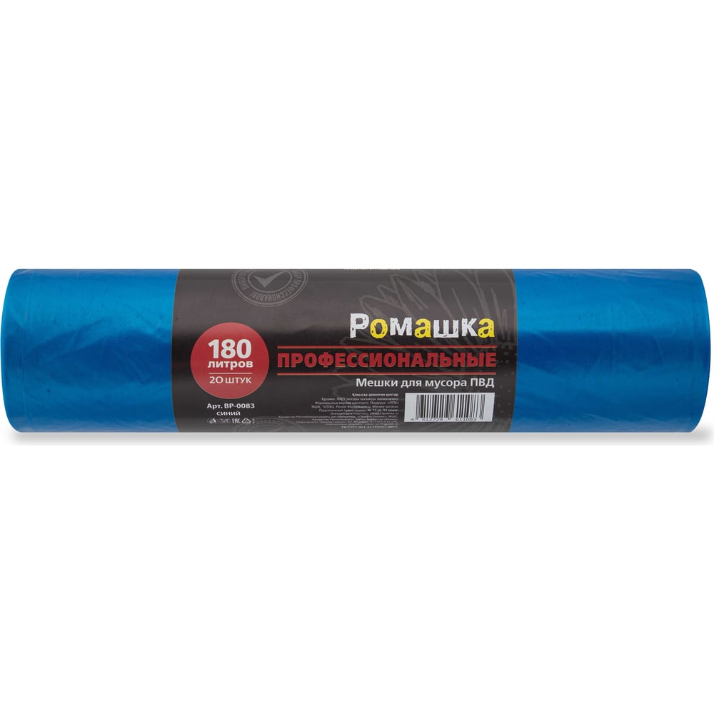 Мешки для мусора в рулоне Профессиональная серия (20 шт, 90x110 см, 180 л, синие, ПВД, 30 мкм) Ромашка ВР-0083