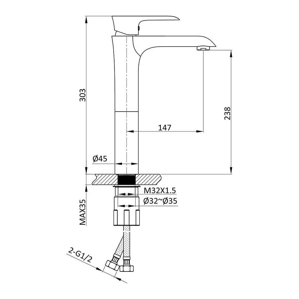 | Диаметр отверстия в раковине | 32-35 мм |
