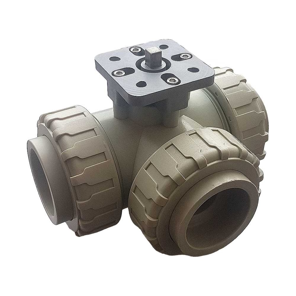 Трехходовой шаровой кран TECHNO 3050-PP полипропиленовый, под привод, DN50, рабочая температура -10~60C 650350