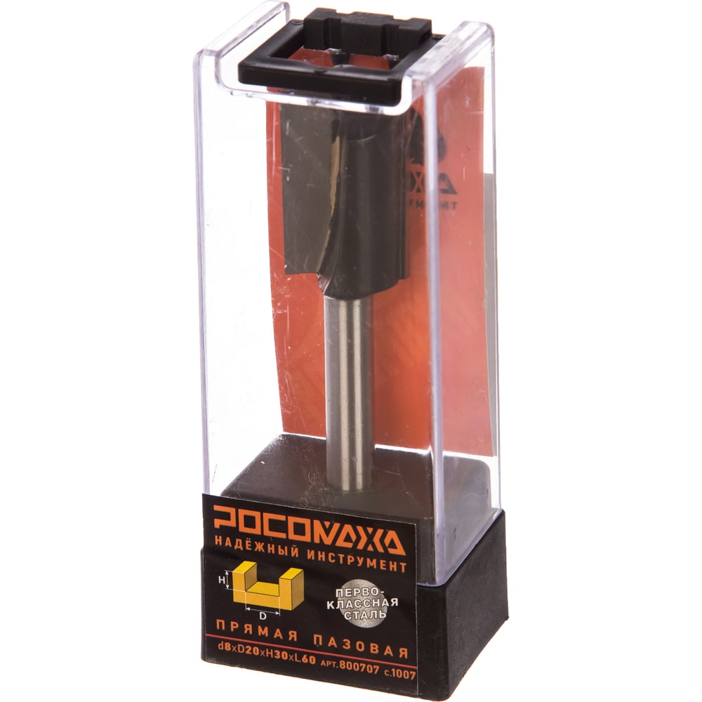 Фреза прямая пазовая серия 1007 (20x30x60 мм; хвостовик 8 мм) Росомаха 800707