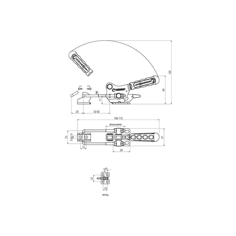 Натяжная защелка KUKAMET с фиксатором, усилие 205 кг 311-2-L