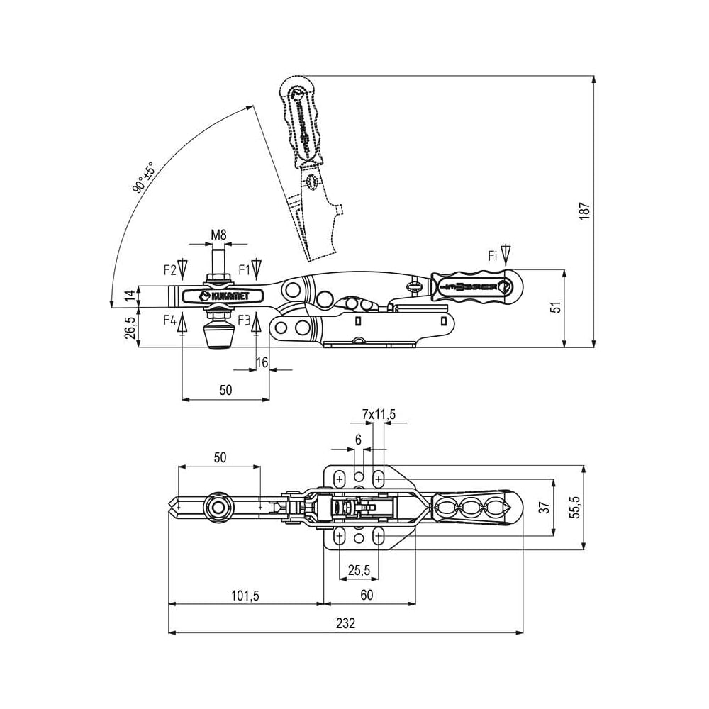 Прижим автоматизированный горизонтальный KUKAMET, усилие 286 кг 121-3