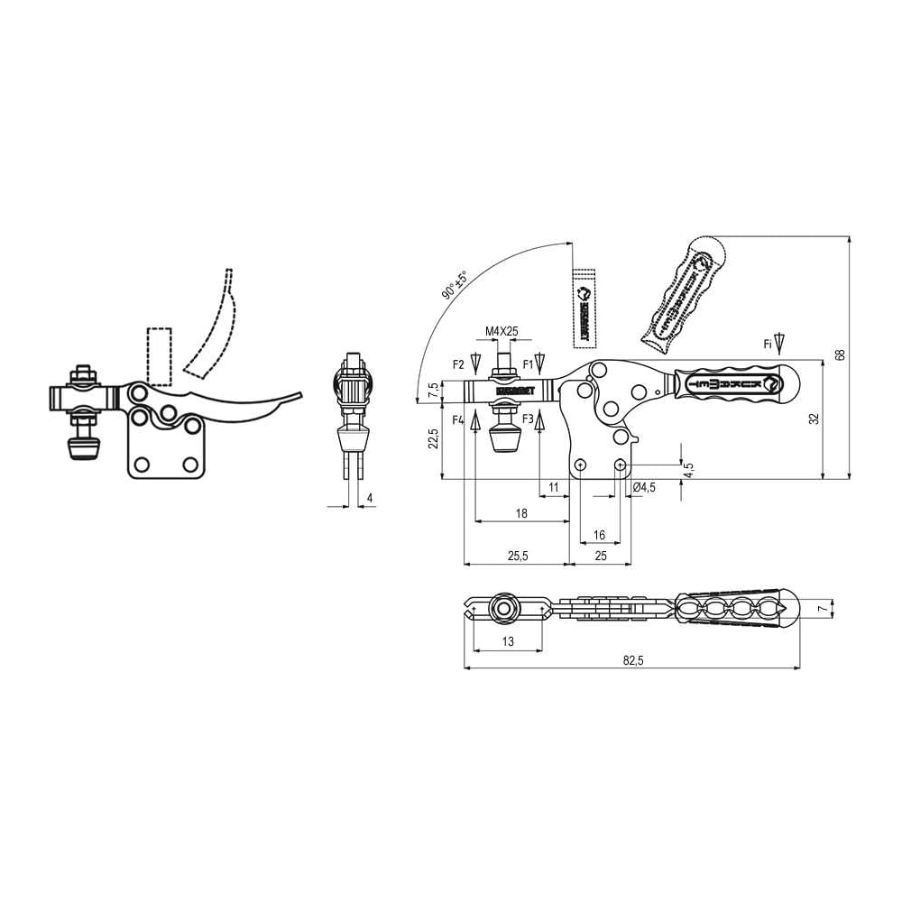 Прижим механический горизонтальный KUKAMET, усилие 53 кг 112-0-M