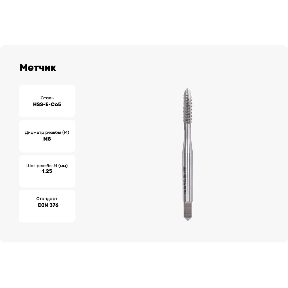 Метчик Профоснастка Эксперт 652 стружколом, однопроходной машинный, М8х1.25 HSSE Co5 пластиковый бокс 1/10 50252025