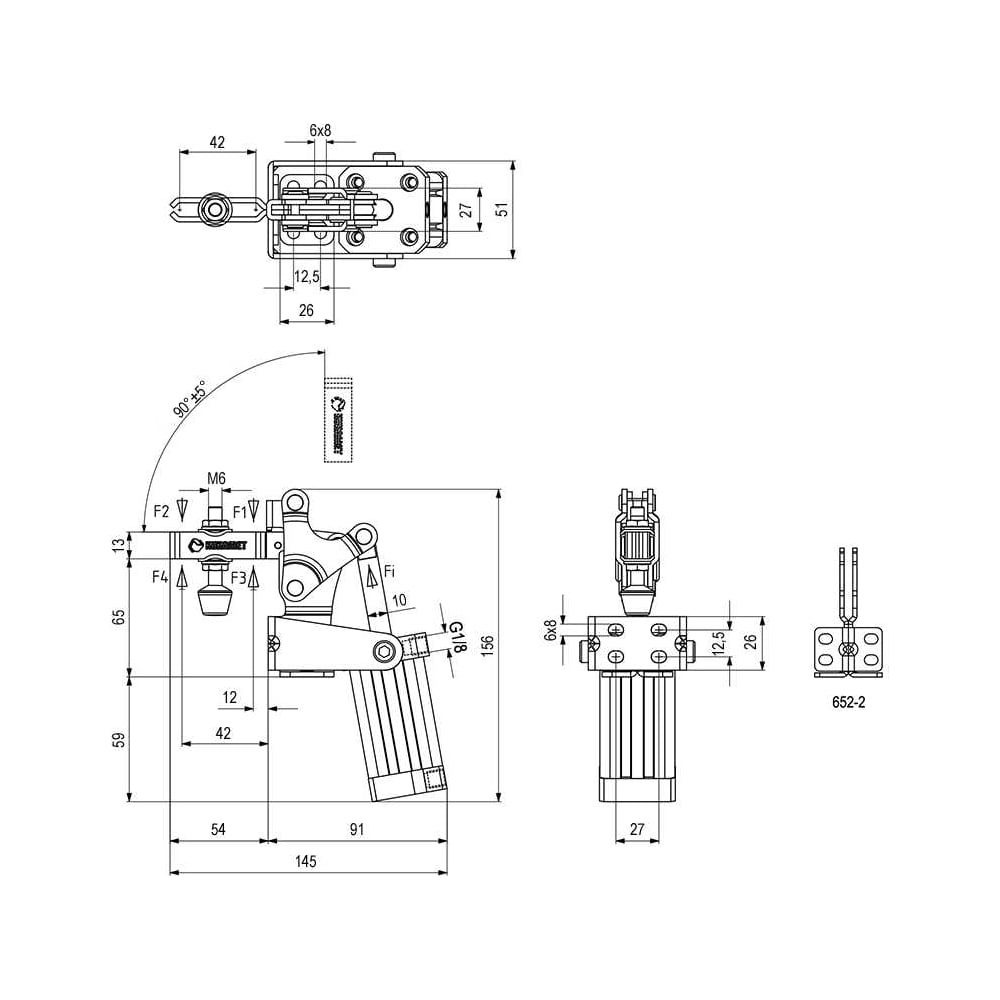 Пневматический вертикальный прижим KUKAMET 652-2