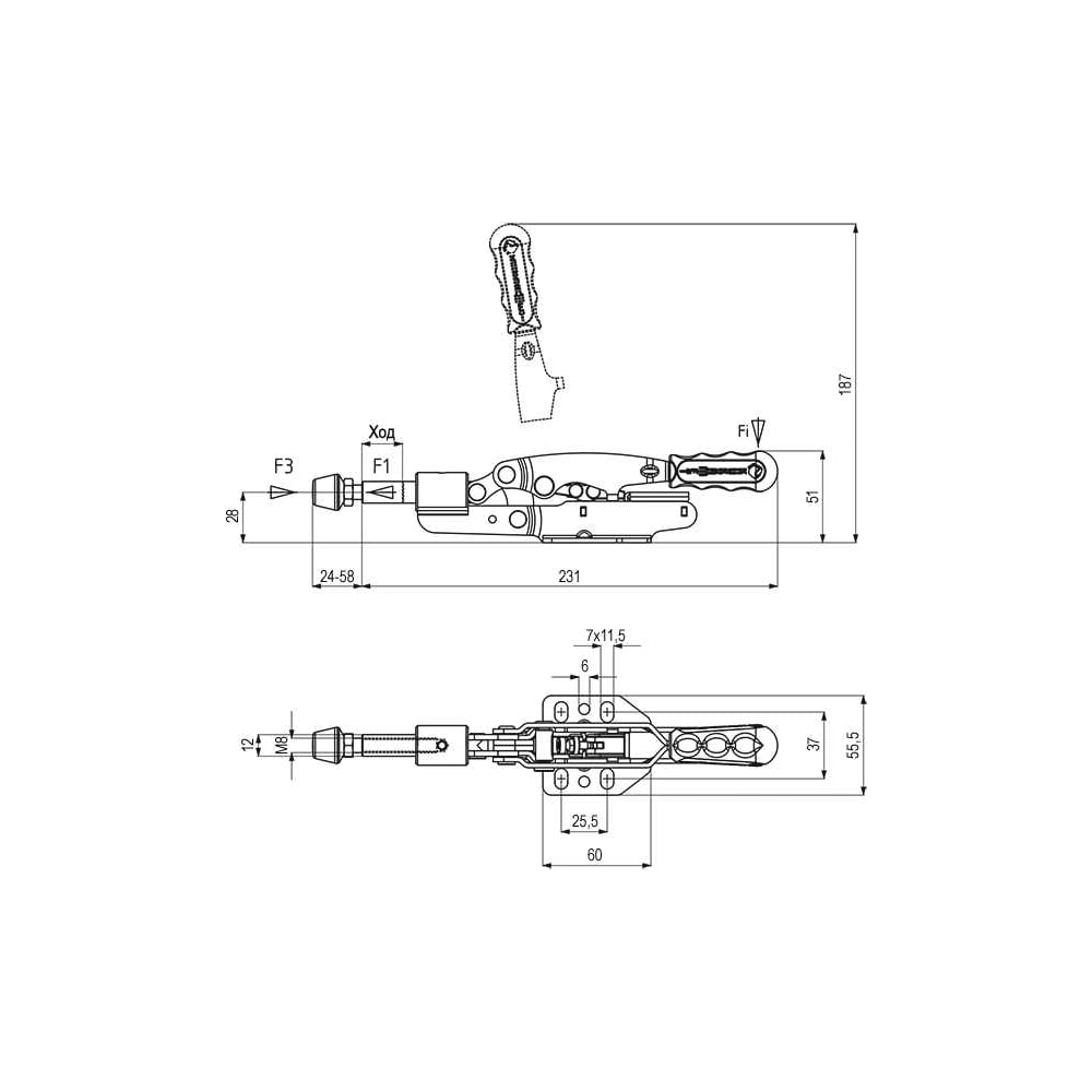Прижим механический плунжерный автоматизированный KUKAMET, усилие 326 кг 551-3