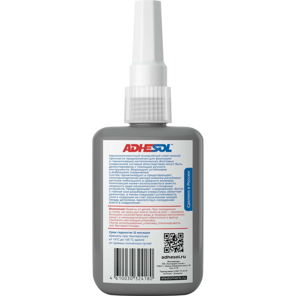 Анаэробный клей для резьбовых соединений ADHESOL 50 мл низкой прочности 522 522100