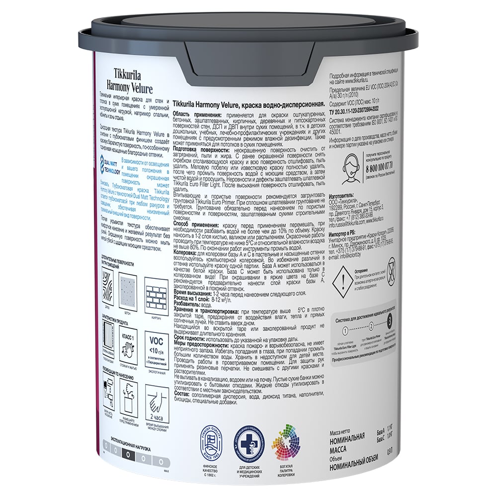 | Система колеровки | по каталогам Tikkurila «Симфония» и «Почувствуй цвет». Для получения пастельных оттенков воспользуйтесь компьютерной колеровкой Tikkurila |