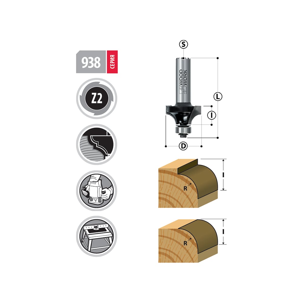 Радиусная фреза WOODWORK 938.8014.08