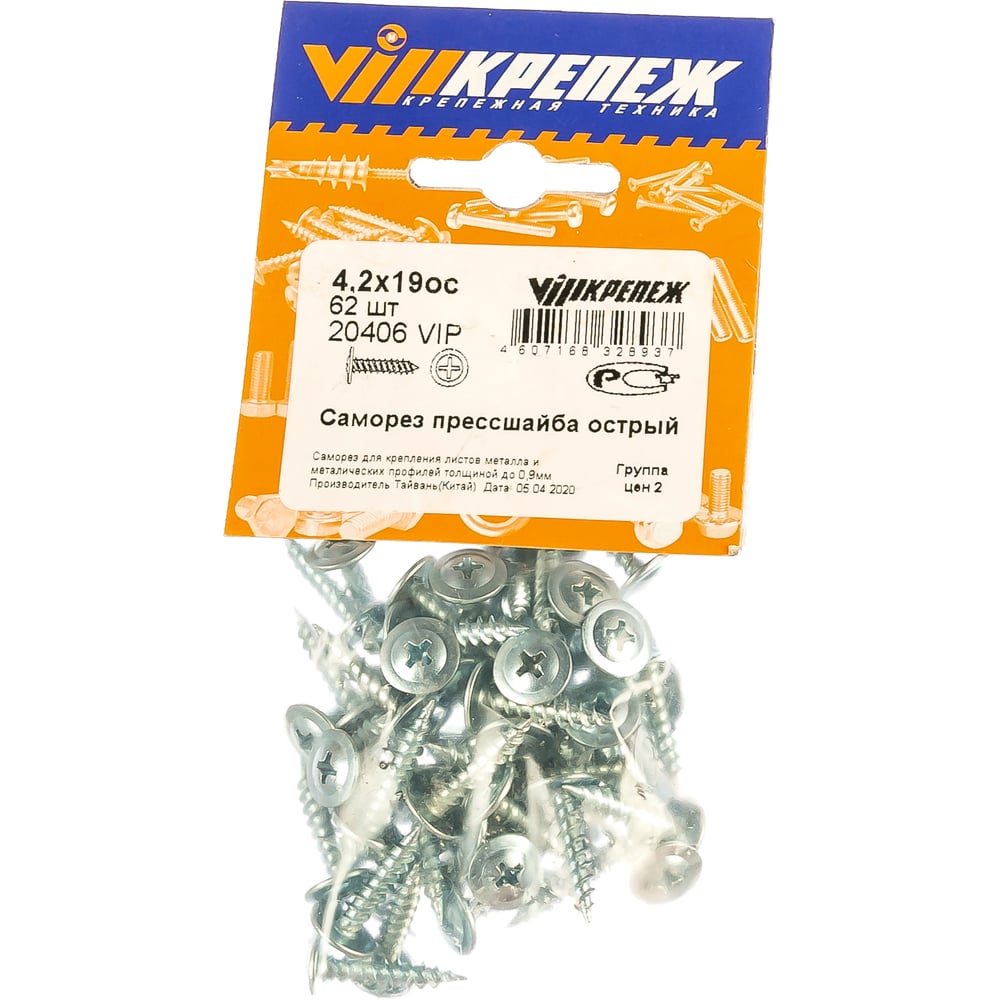 Саморез с прессшайбой VIPКрепеж острый 4,2х19 62 шт 20406 VIP