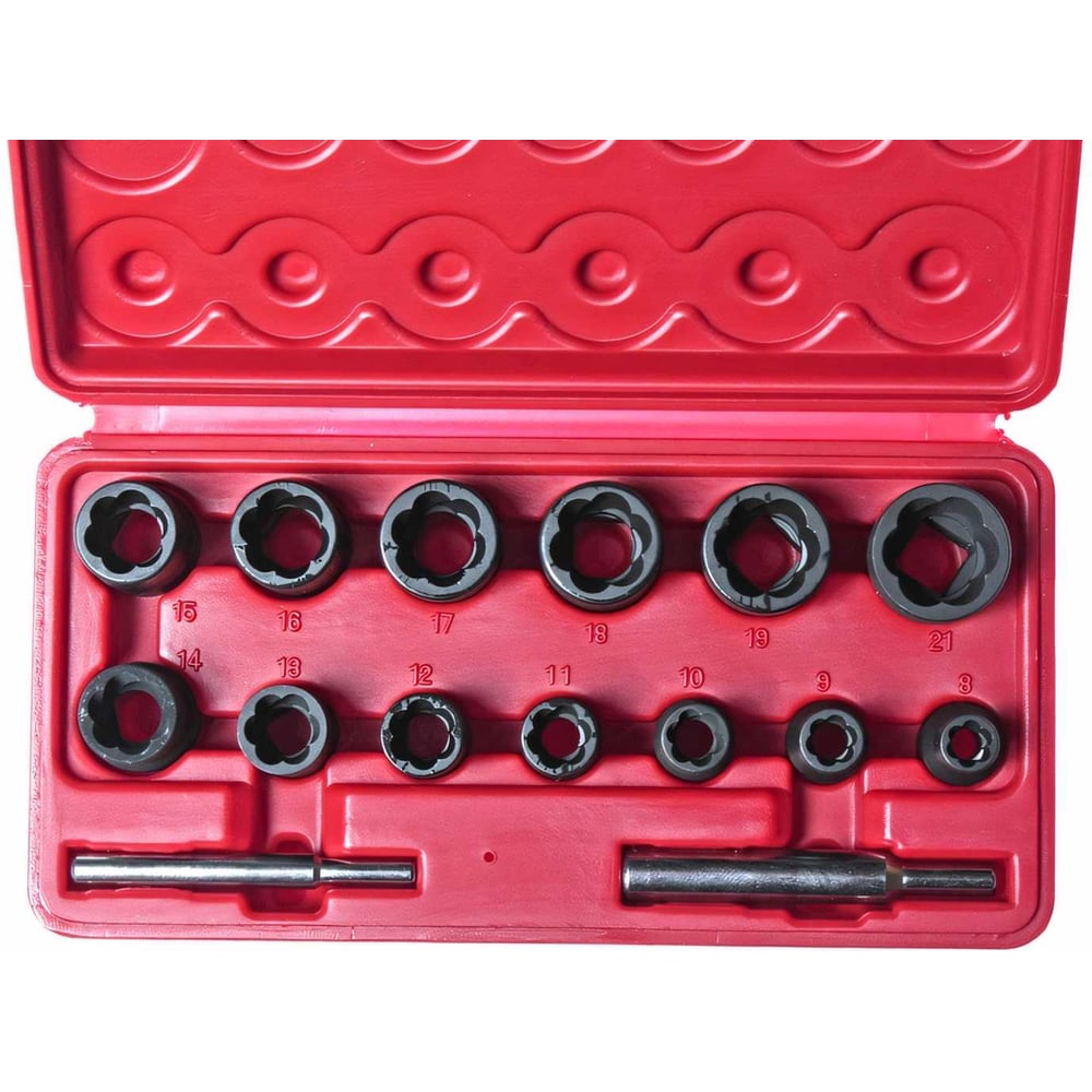 Набор головок для поврежденных болтов и гаек 8-21 мм, 15 предметов JTC /1- JTC-1321S