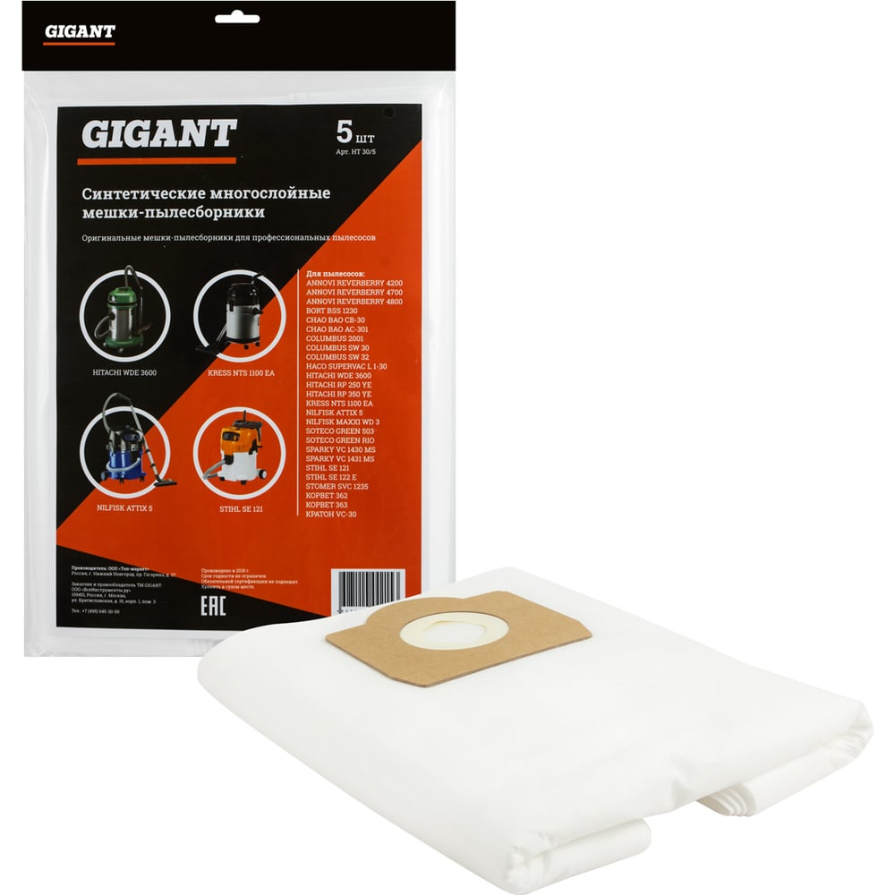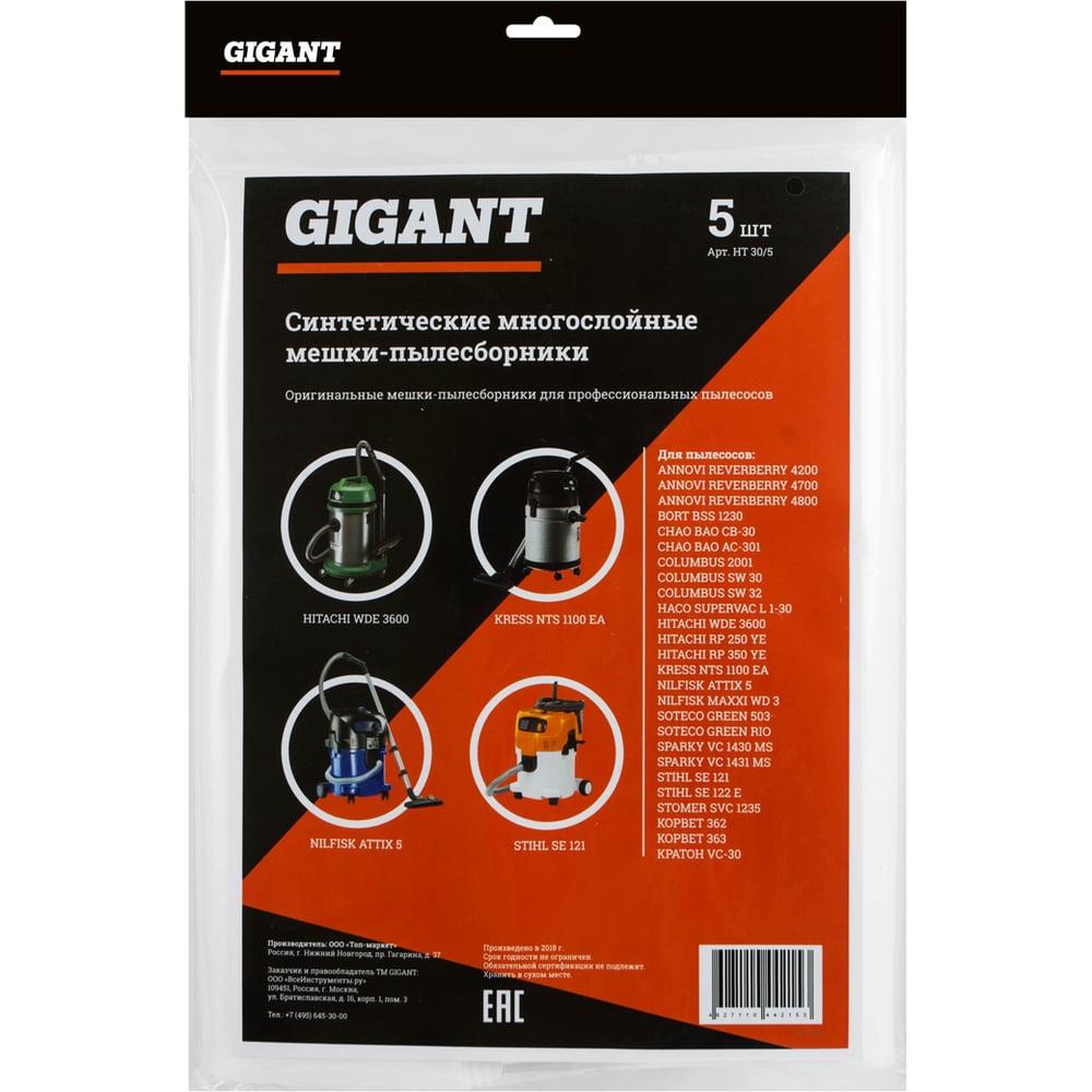 Мешки для профессиональных пылесосов 5 шт. Gigant синтетические до 36 литров HT 30/5 G-HT-30/5 HT30/5