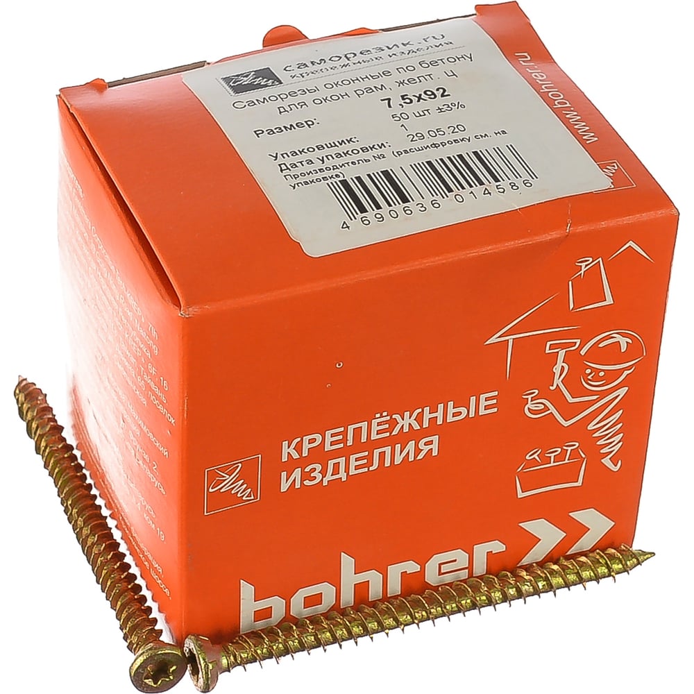 Оконные саморезы по бетону Саморезик 7.5х92 для окон рам, желтый цинк 50шт OSB-7.5х92-50