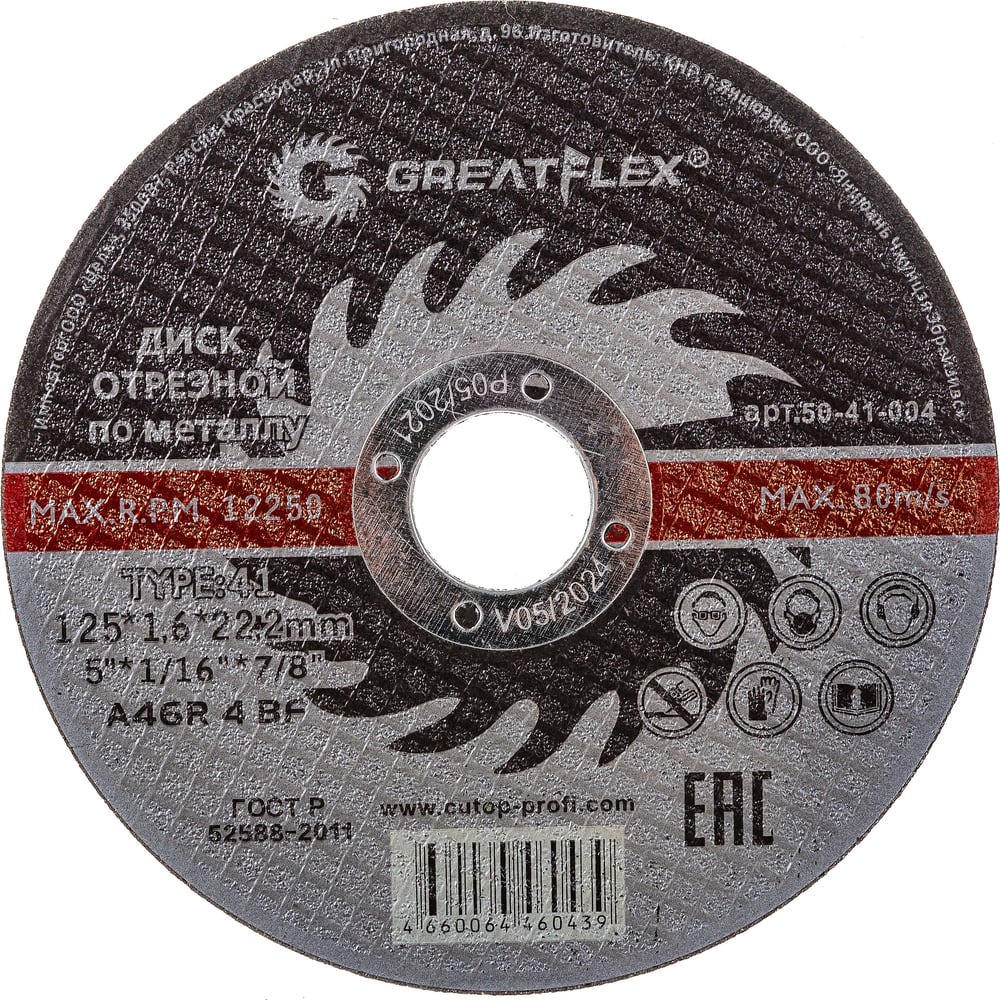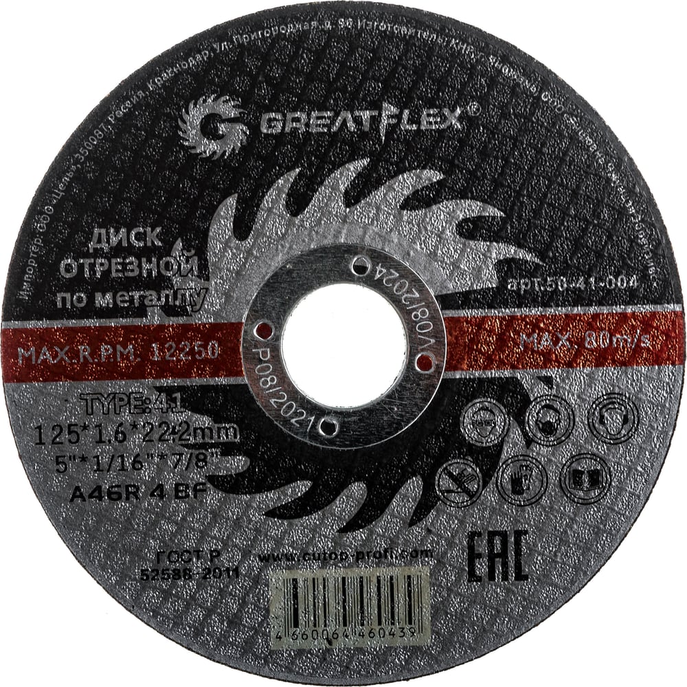 Диск отрезной по металлу (125х1.6х22.2 мм) Greatflex 50-41-004