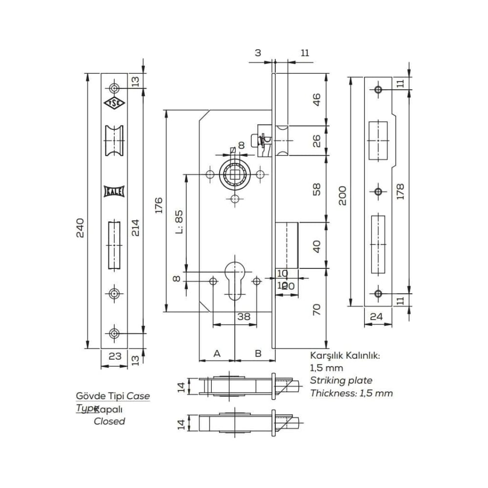 | Удаление ключевого отверстия (Backset) | 45 мм |