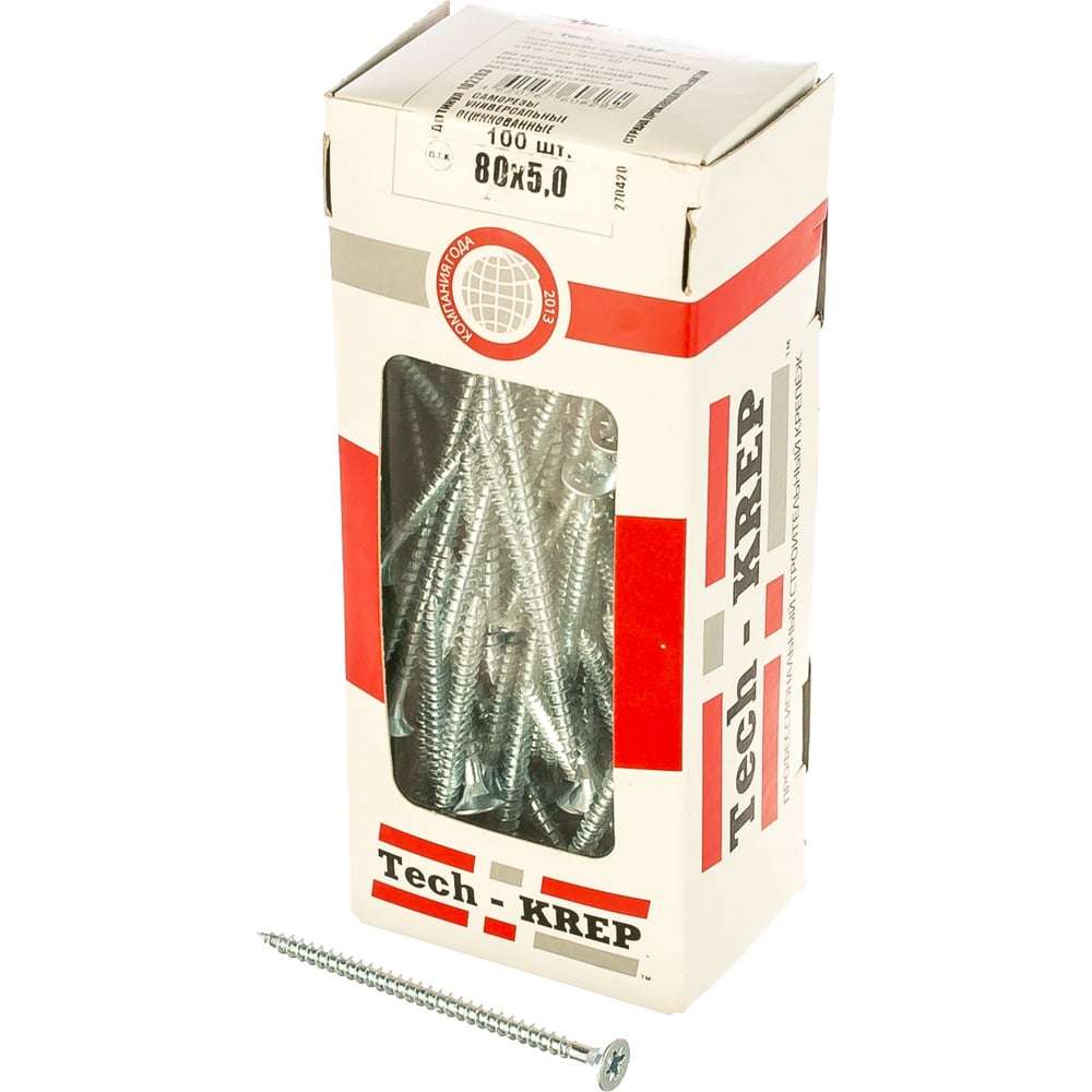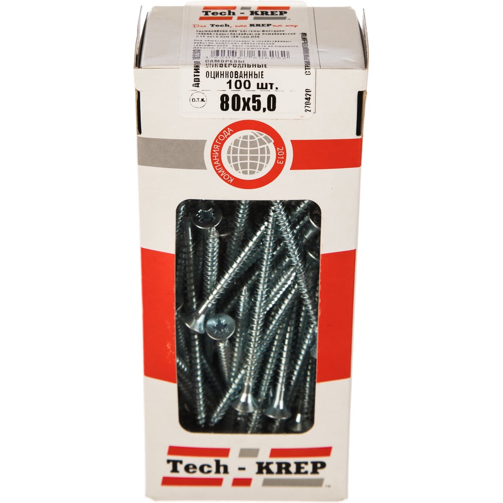 Универсальный саморез Tech-Krep 80х5,0 мм 100 шт оцинкованный, коробка с окном 102203