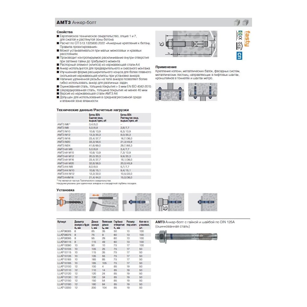 Оцинкованный анкер-болт Fasty амт3 m12- 24/120 LLAP12120