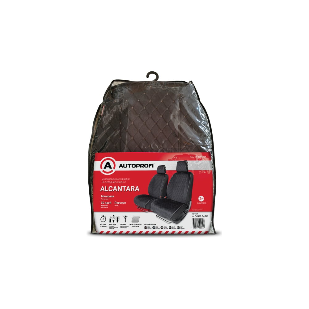 Накидки на передние сиденья AUTOPROFI материал алькантара с контрастной прострочкой, поролон 10 мм, антискользящее покрытие, комплект 2 шт., черный ALC-0410 BK/BK