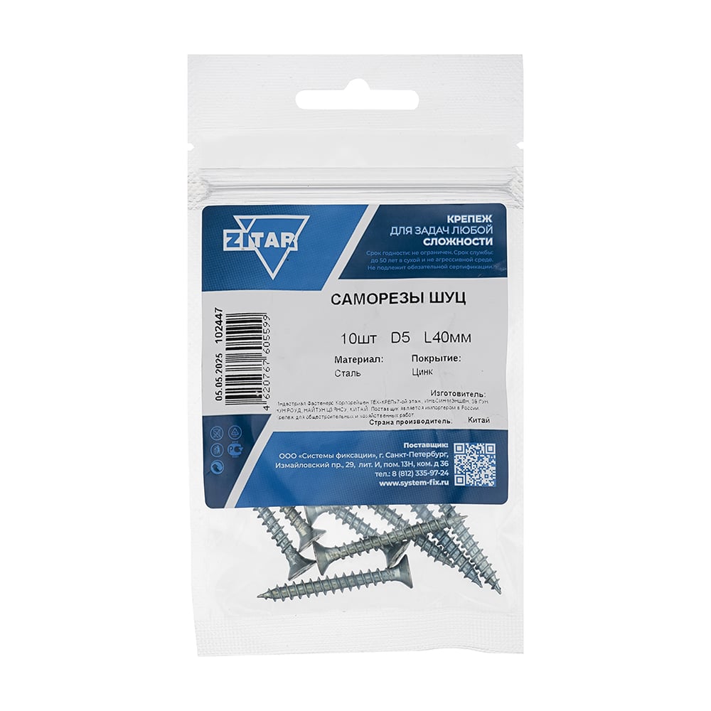 Саморез ШУц с потайной головкой 5,0x40 мм, 10 шт., пакет Zitar 102447