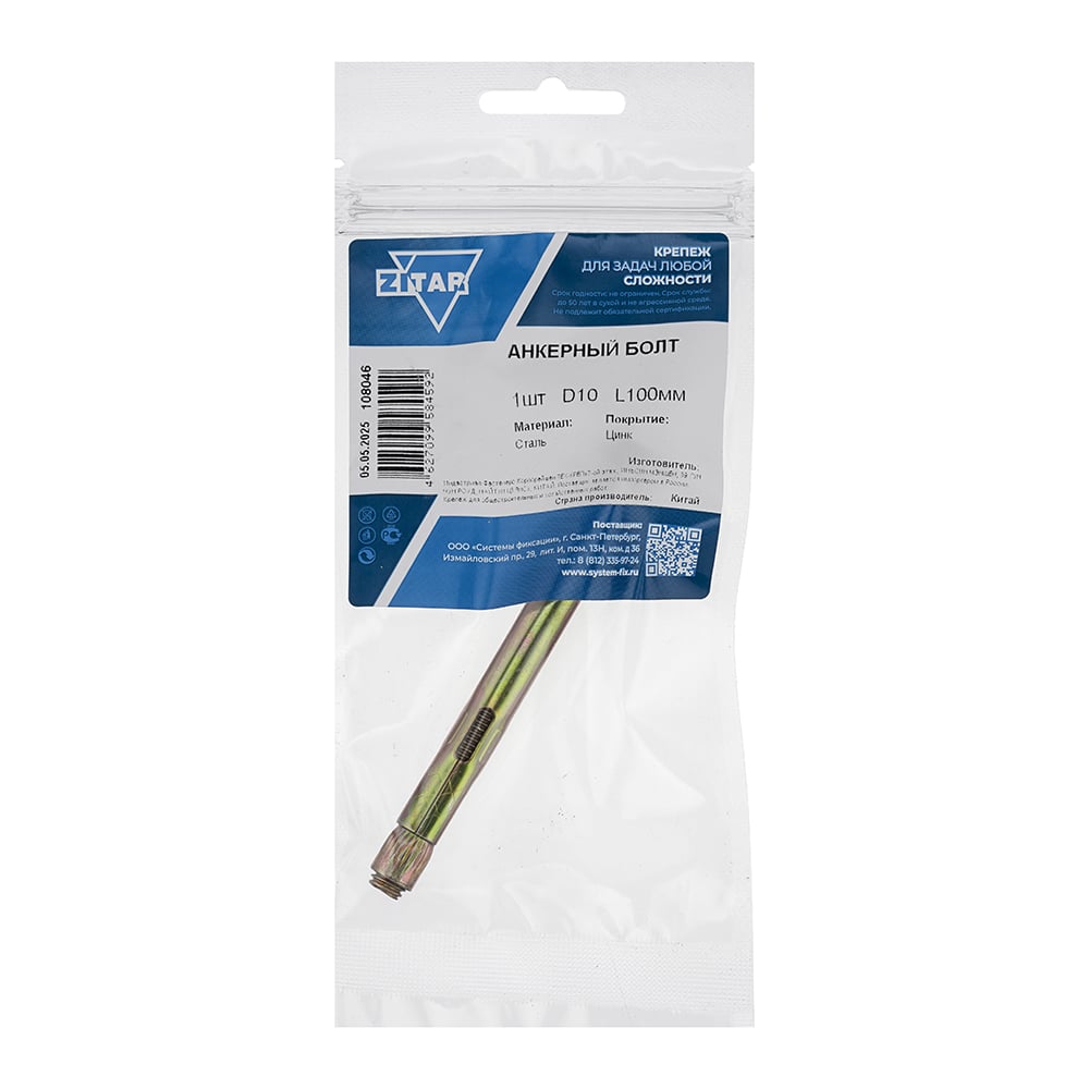 Анкерный болт 10x100 мм, 1 шт, пакет Zitar 108046