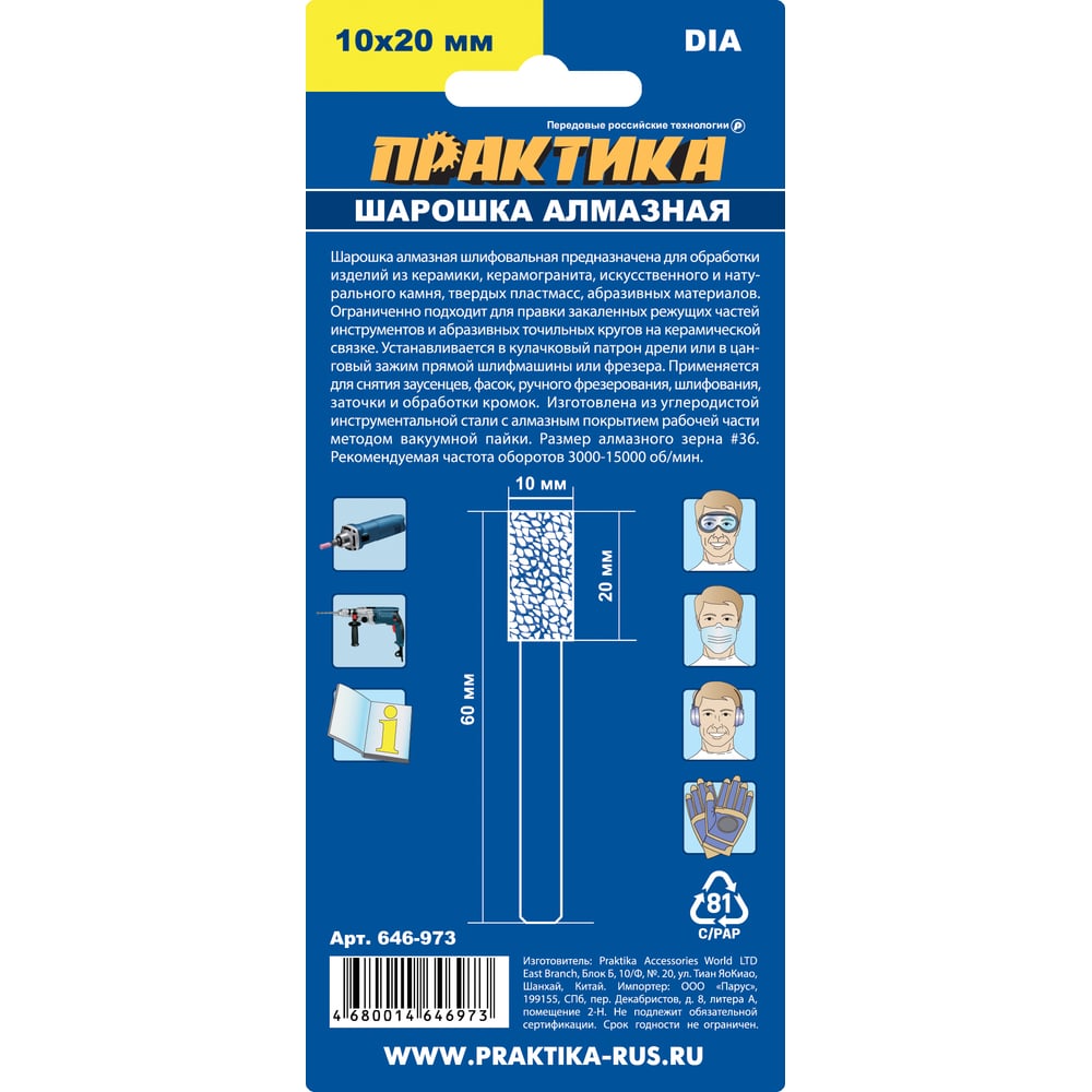 Шарошка алмазная цилиндрическая (10х20 мм) ПРАКТИКА 646-973