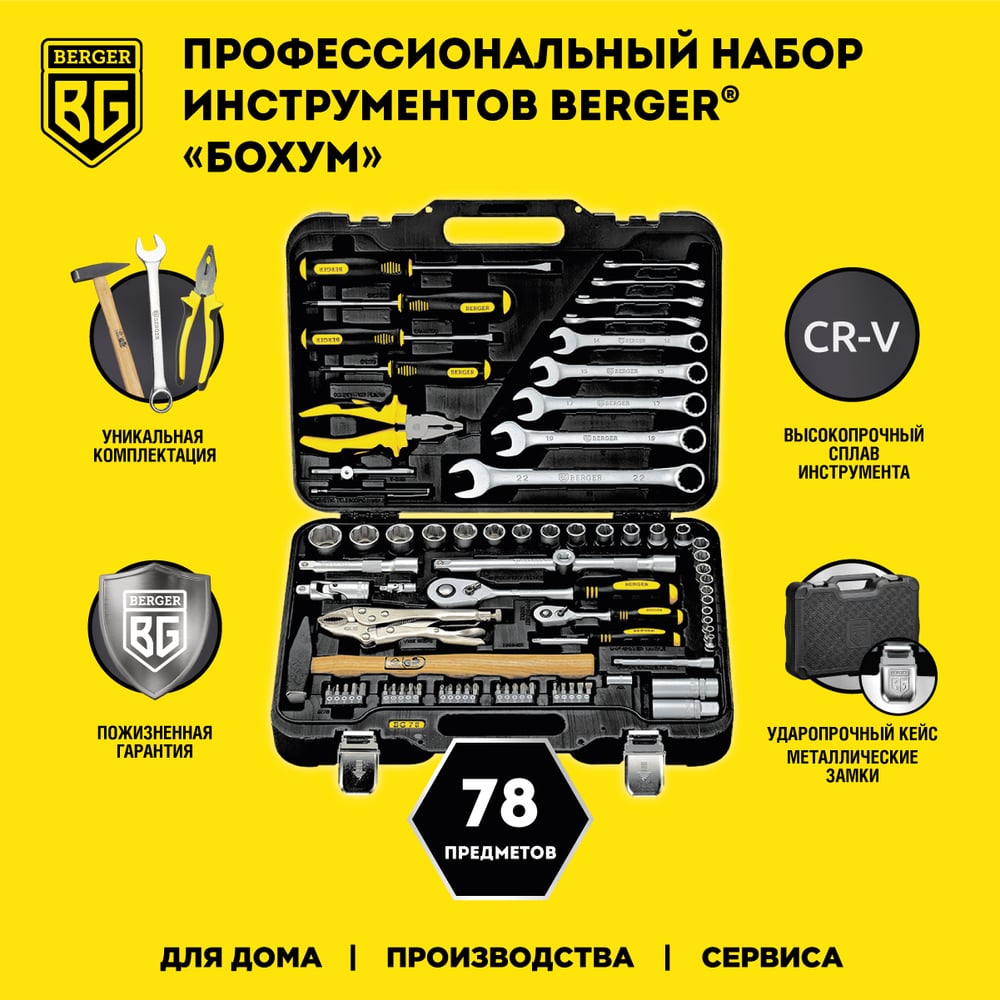 Универсальный набор инструментов 78 предметов Berger BG BG078-1214