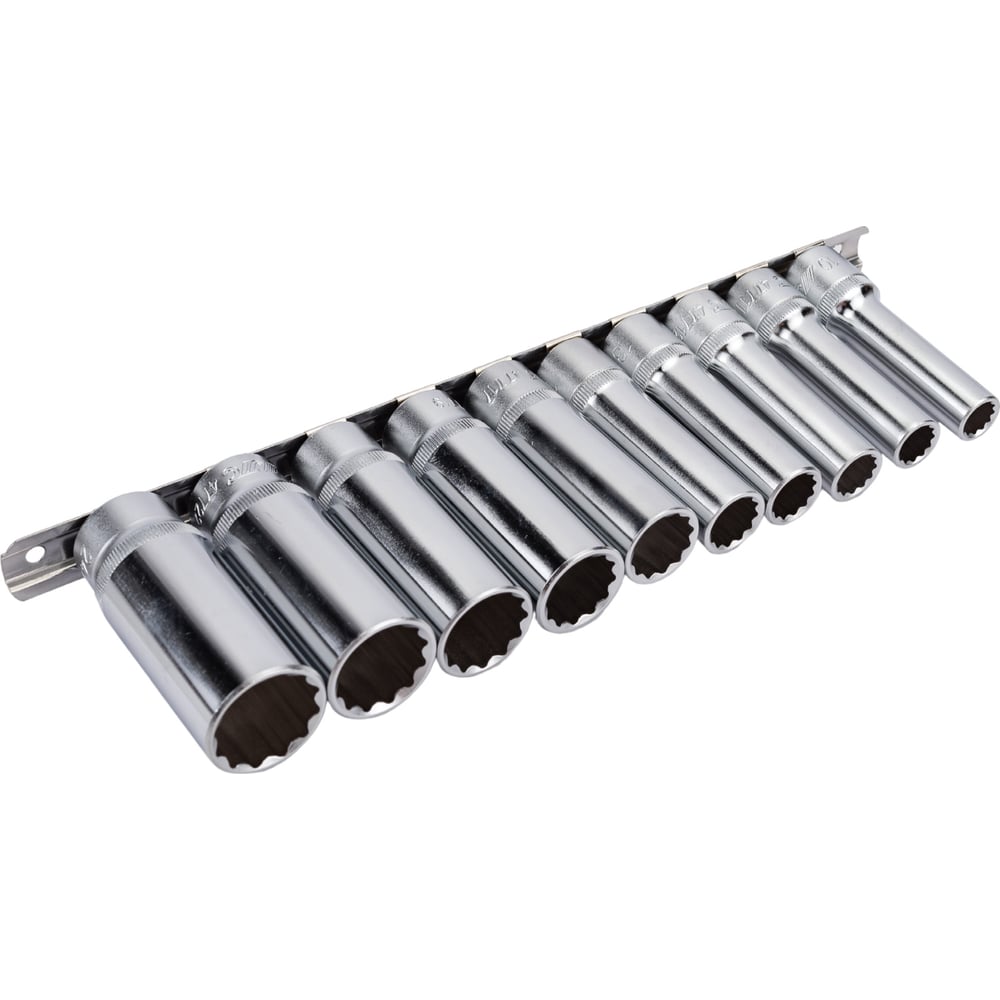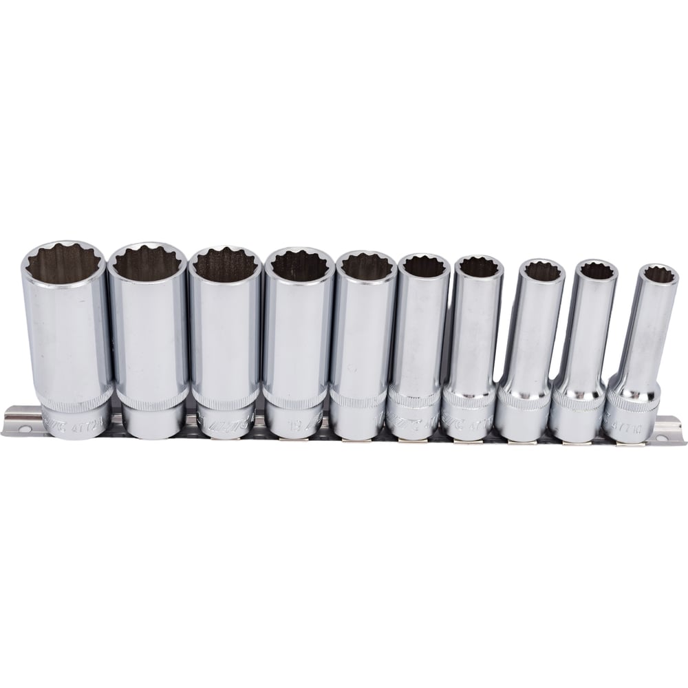 10 двенадцатигранных головок длиной 76 мм с присоединительным квадратом 1/2": 10, 11, 12, 13, 14, 17, 19, 21, 22, 24 мм;