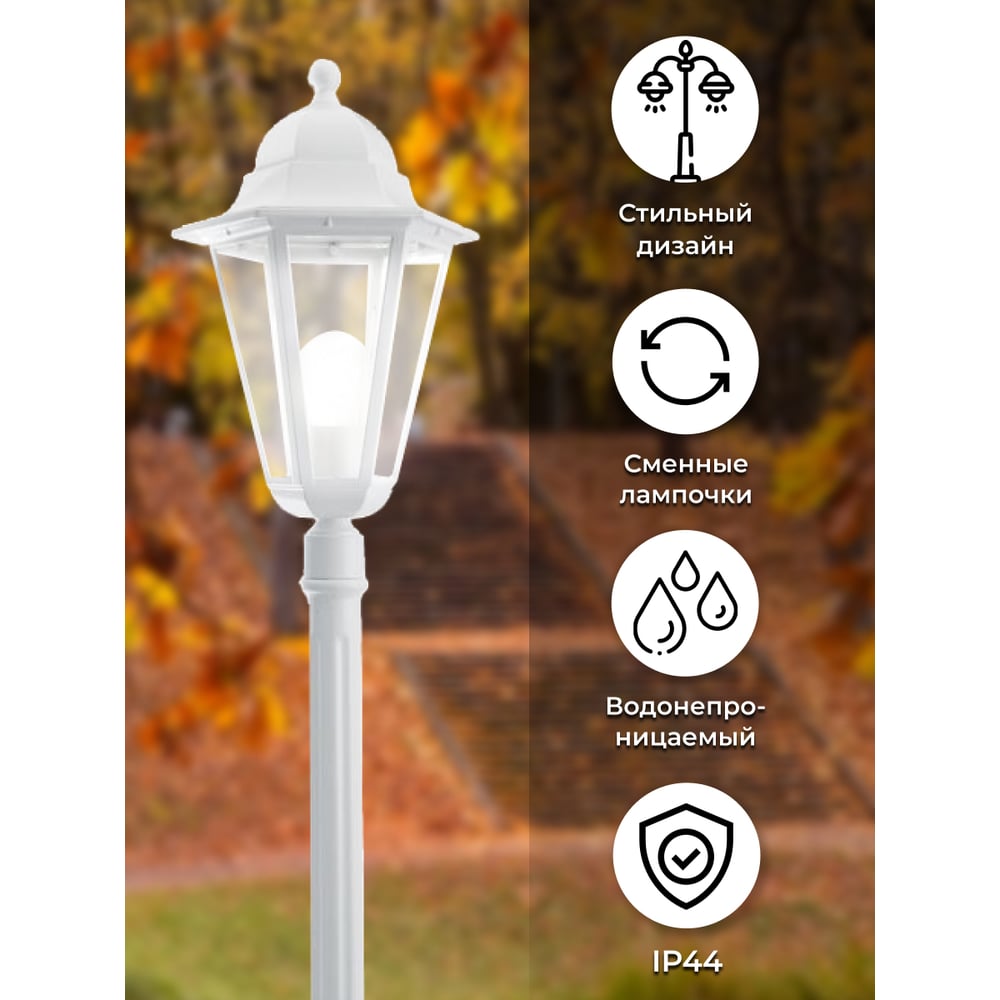 Садово-парковый светильник, столб 100W E27 230V, белый Feron 6210 11075