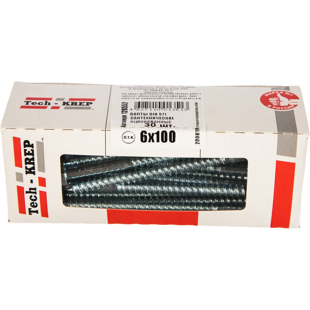 Сантехнический болт DIN 571 оцинкованный 6х100, 30шт - коробка Tech-Krep 126552