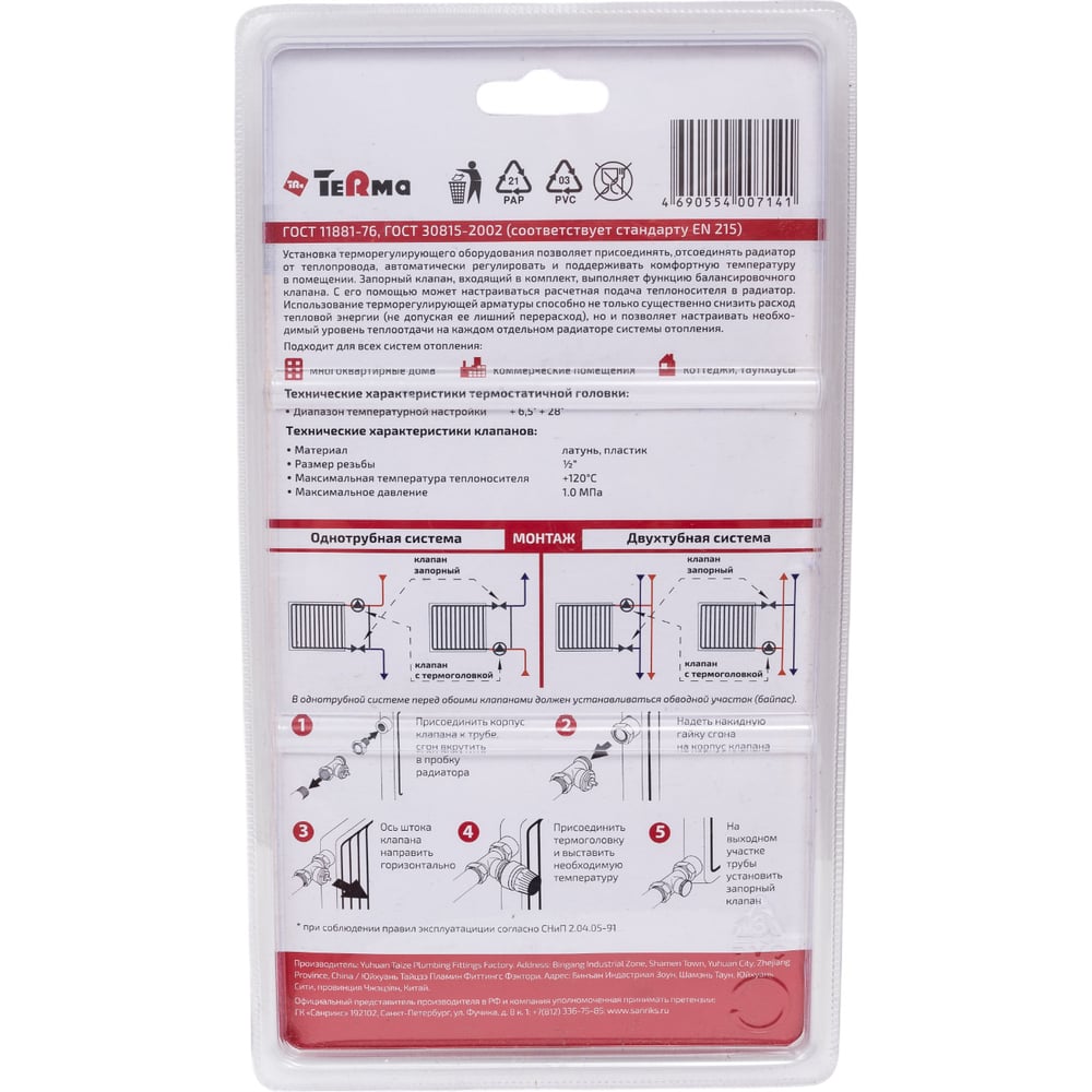 Термостатический комплект для радиатора Terma прямой 1/2" (33969) 26245