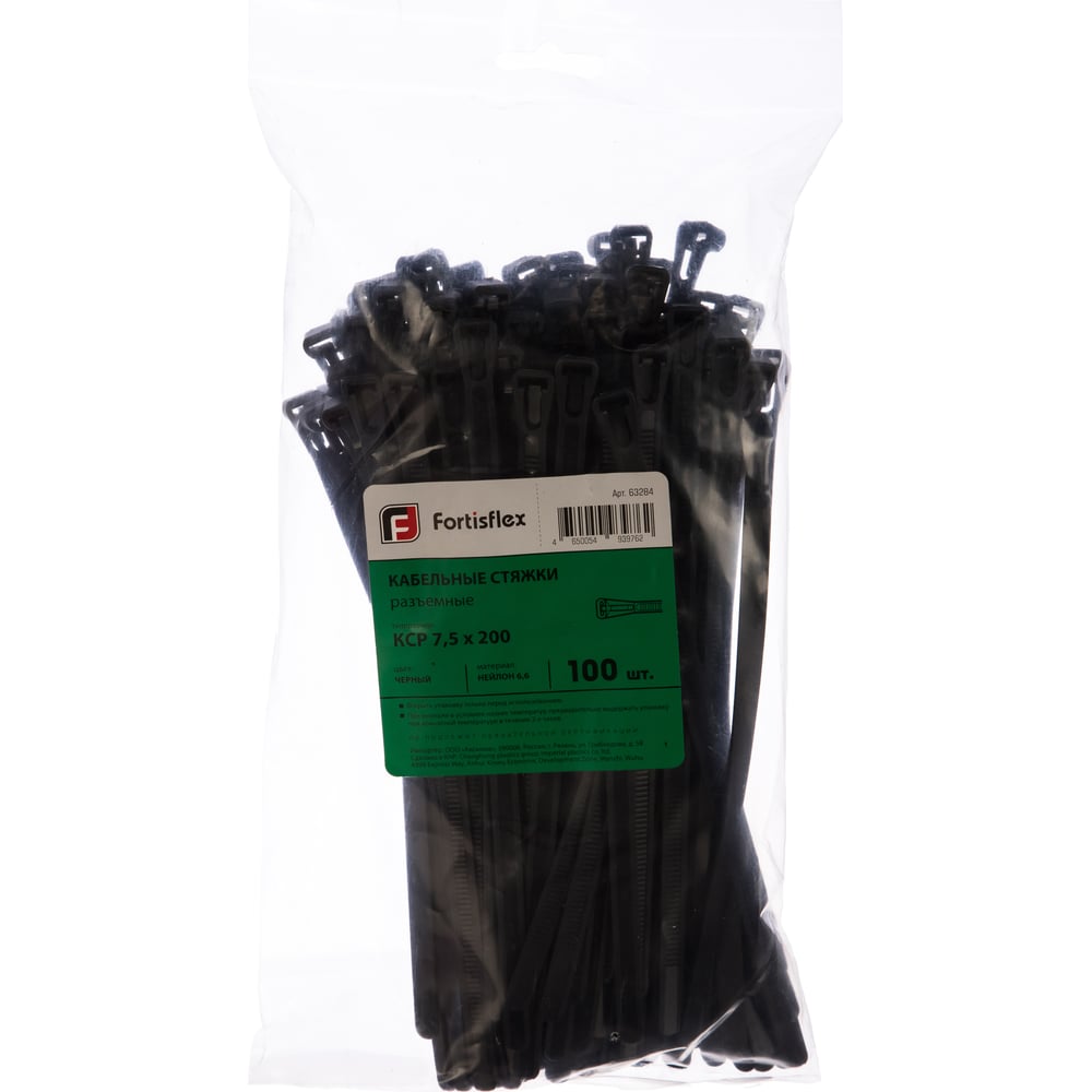 Нейлоновые стяжки FORTISFLEX КСР 7.5х200 черный 100 штук 63284