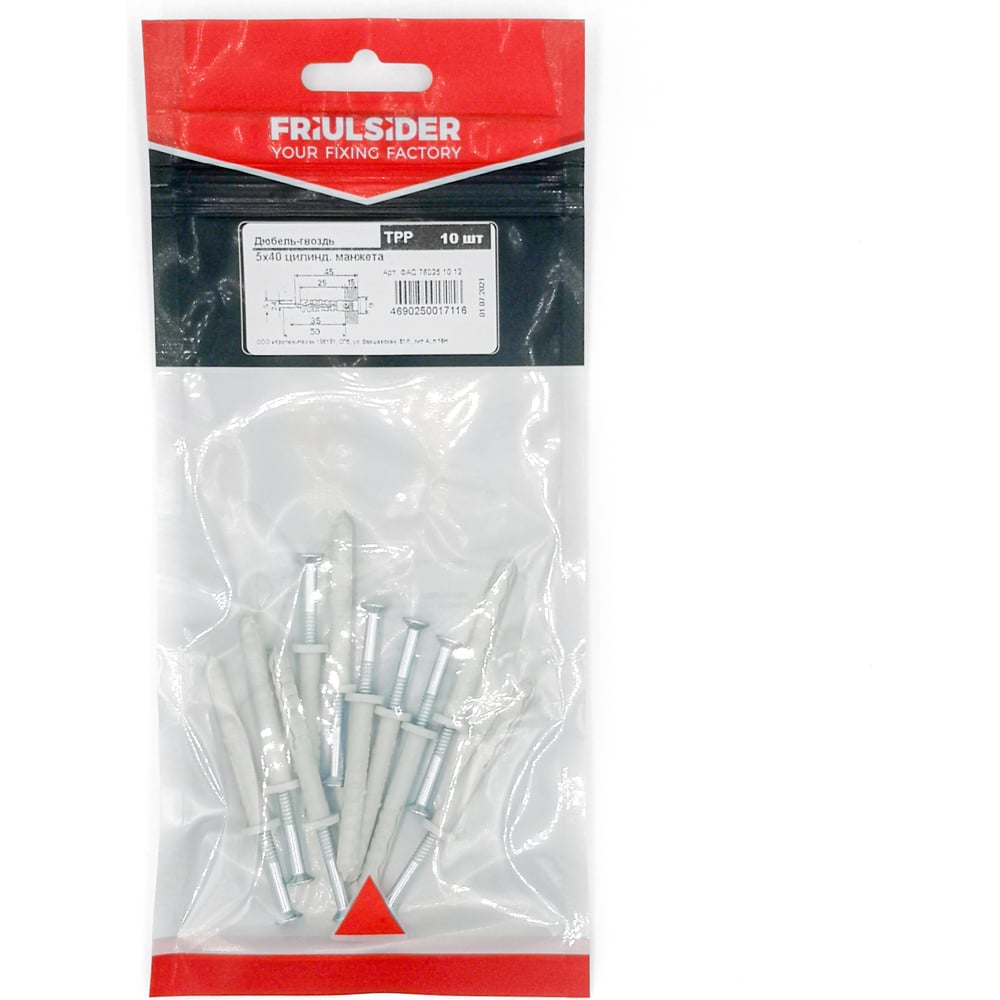 Дюбель-гвоздь Friulsider tpp 5x40 цилиндрическая манжета (10 шт.) ФАС 76025 10 12