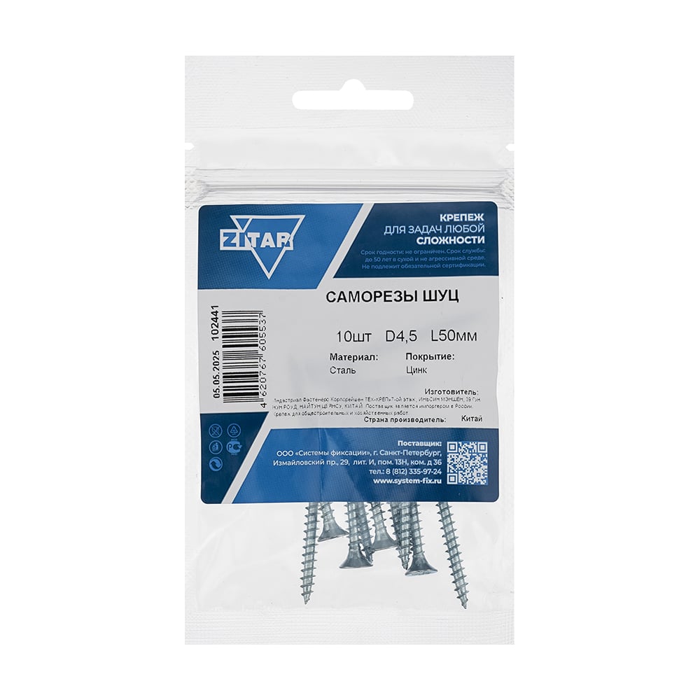 Саморез ШУц с потайной головкой 4,5x50 мм, 10 шт., пакет Zitar 102441