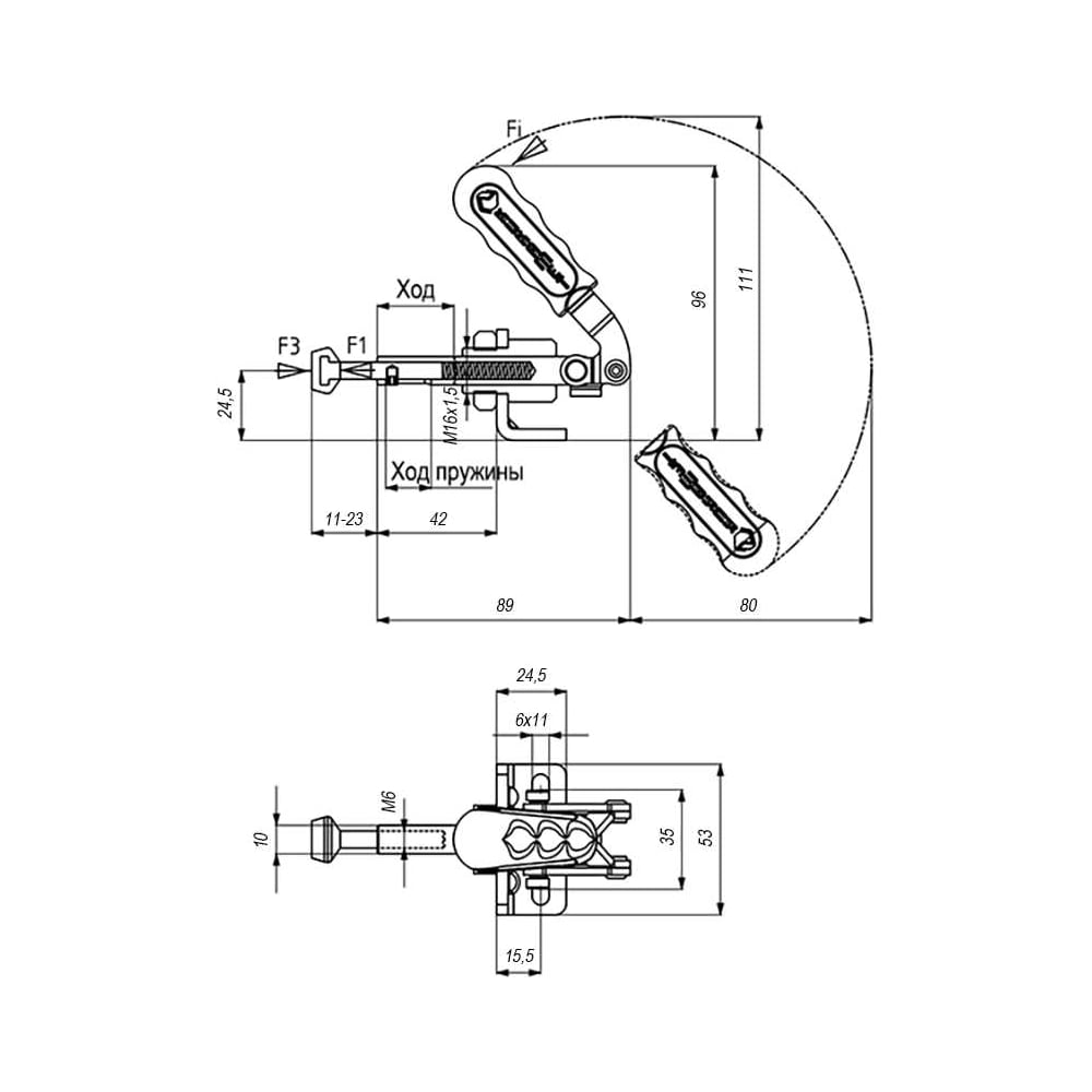 Плунжерный подпружиненный зажим KUKAMET, усилие 55 кг 511-2-Y