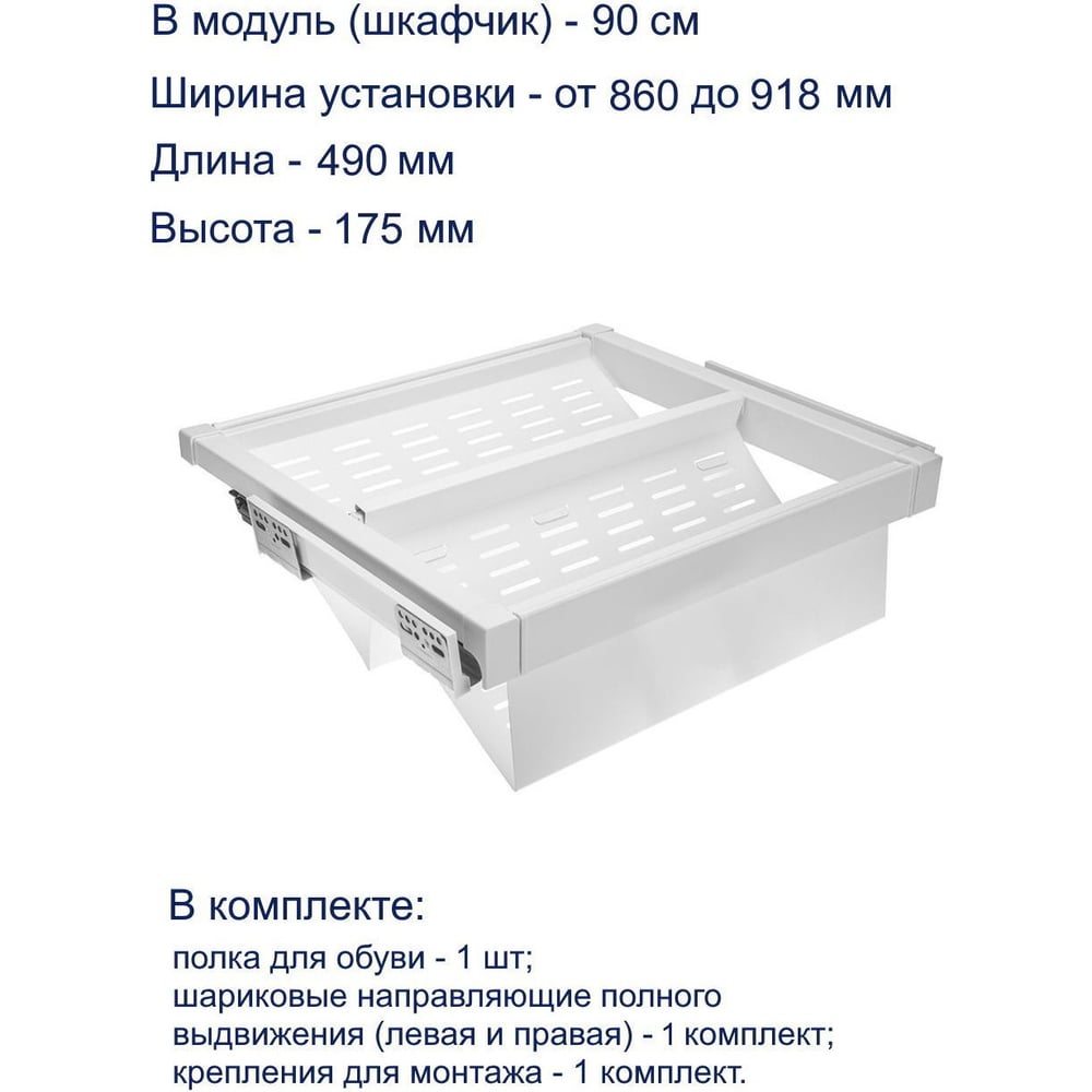 Полка для обуви GTV перфорированная, белая, в модуль 900 мм WG-POBUWM90-10