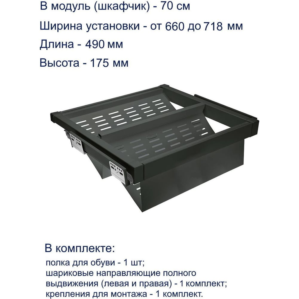 Полка для обуви GTV перфорированная, графит, в модуль 700 мм WG-POBUWM70-60