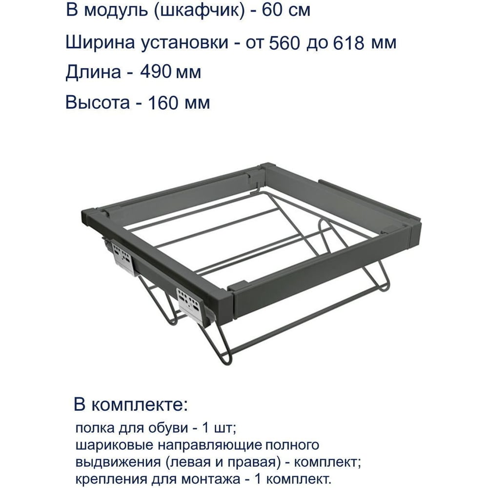 Полка для обуви GTV графит, в модуль 600 мм WG-POBUW60-60