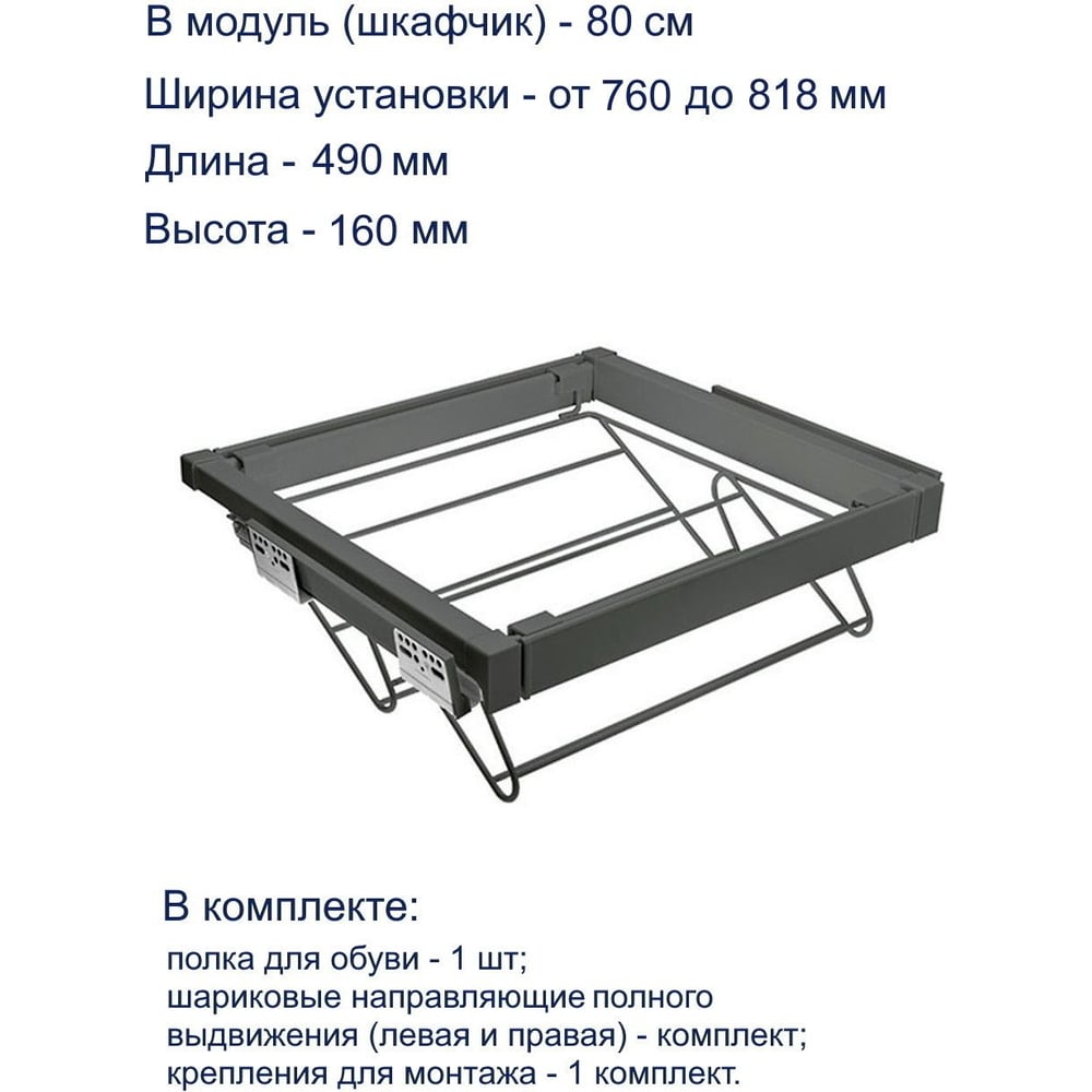 Полка для обуви GTV графит, в модуль 800 мм WG-POBUW80-60