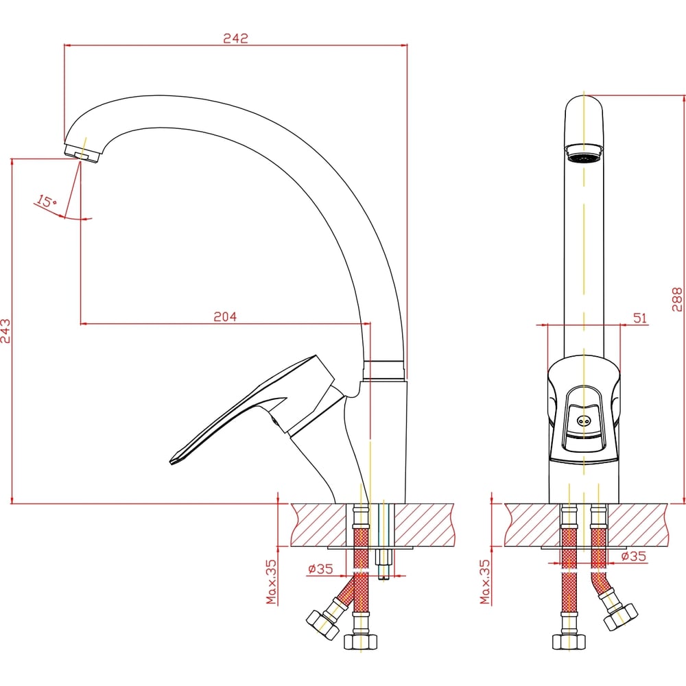 Цвет бордовый Тип установки настольный/на раковину Стиль современный Материал корпуса цинк Поворотный излив да Назначение для кухни Тип крепления на гайку Гибкий излив нет Длина излива 204 мм Высота смесителя 288 мм Лейка нет Термостат нет Встраиваемый нет Подводка в комплекте нет Аэратор да Переключатель на фильтр нет Тип смесителя однорычажный Форма излива воды традиционная Запорный клапан керамический картридж Форма смесителя округлая Выдвижной излив нет Излив есть Складной нет С щеткой нет Двойной излив нет Диаметр картриджа 40 мм Размер крепления G1/2 Направление струи вертикальное Диаметр отверстия в раковине 35 мм ГОСТ/DIN нет Высота излива 243 мм Мах толщина столешницы 35 мм Расположение рычага сбоку Расположение термостата без термостата