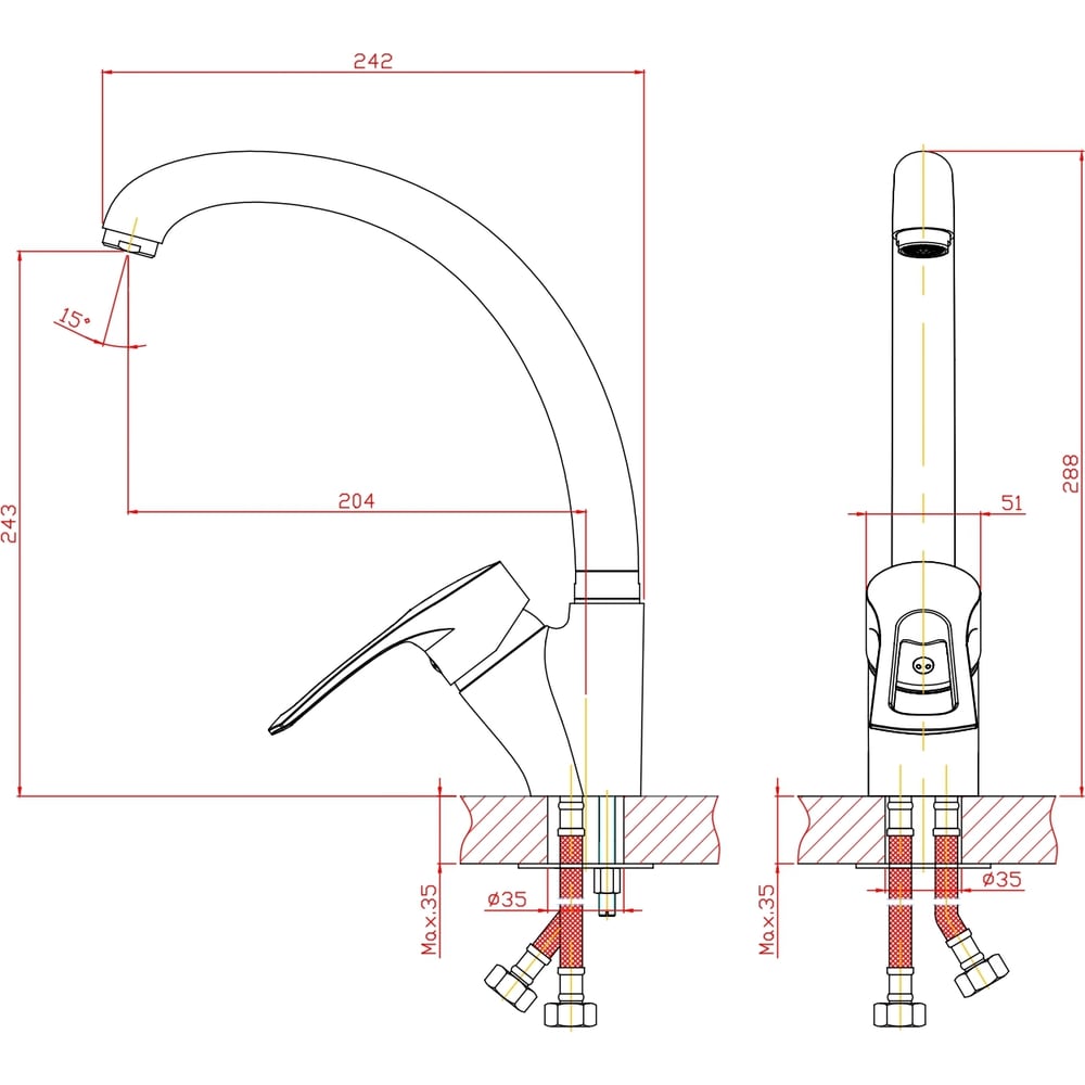 Цвет бежевый Тип установки настольный/на раковину Стиль современный Материал корпуса цинк Поворотный излив да Назначение для кухни Тип крепления на гайку Гибкий излив нет Длина излива 204 мм Высота смесителя 288 мм Лейка нет Термостат нет Встраиваемый нет Подводка в комплекте нет Аэратор да Переключатель на фильтр нет Тип смесителя однорычажный Форма излива воды традиционная Запорный клапан керамический картридж Форма смесителя округлая Выдвижной излив нет Излив есть Складной нет С щеткой нет Двойной излив нет Диаметр картриджа 40 мм Размер крепления G1/2 Направление струи вертикальное Диаметр отверстия в раковине 35 мм ГОСТ/DIN нет Высота излива 243 мм Мах толщина столешницы 35 мм Расположение рычага сбоку Расположение термостата без термостата