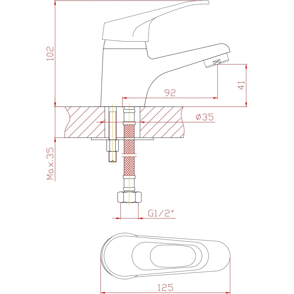 | Диаметр отверстия в раковине | 35 мм |